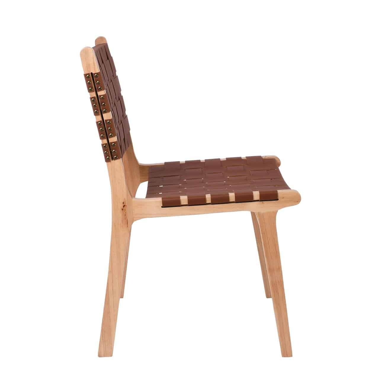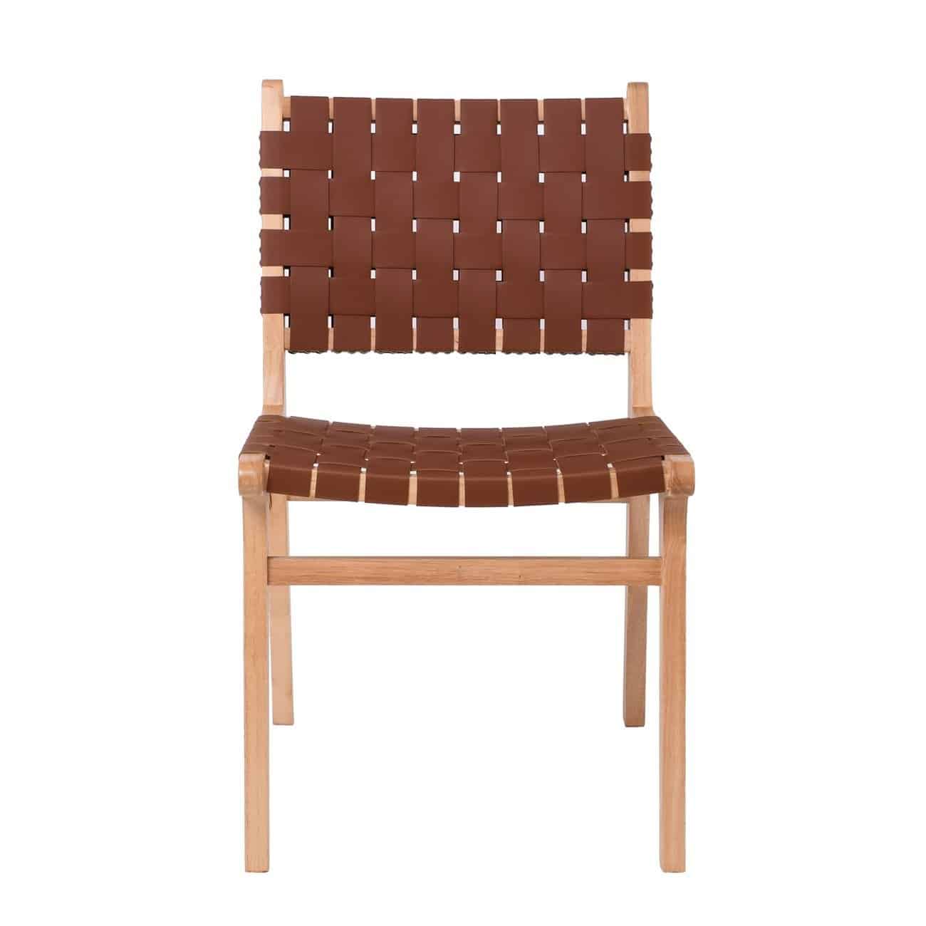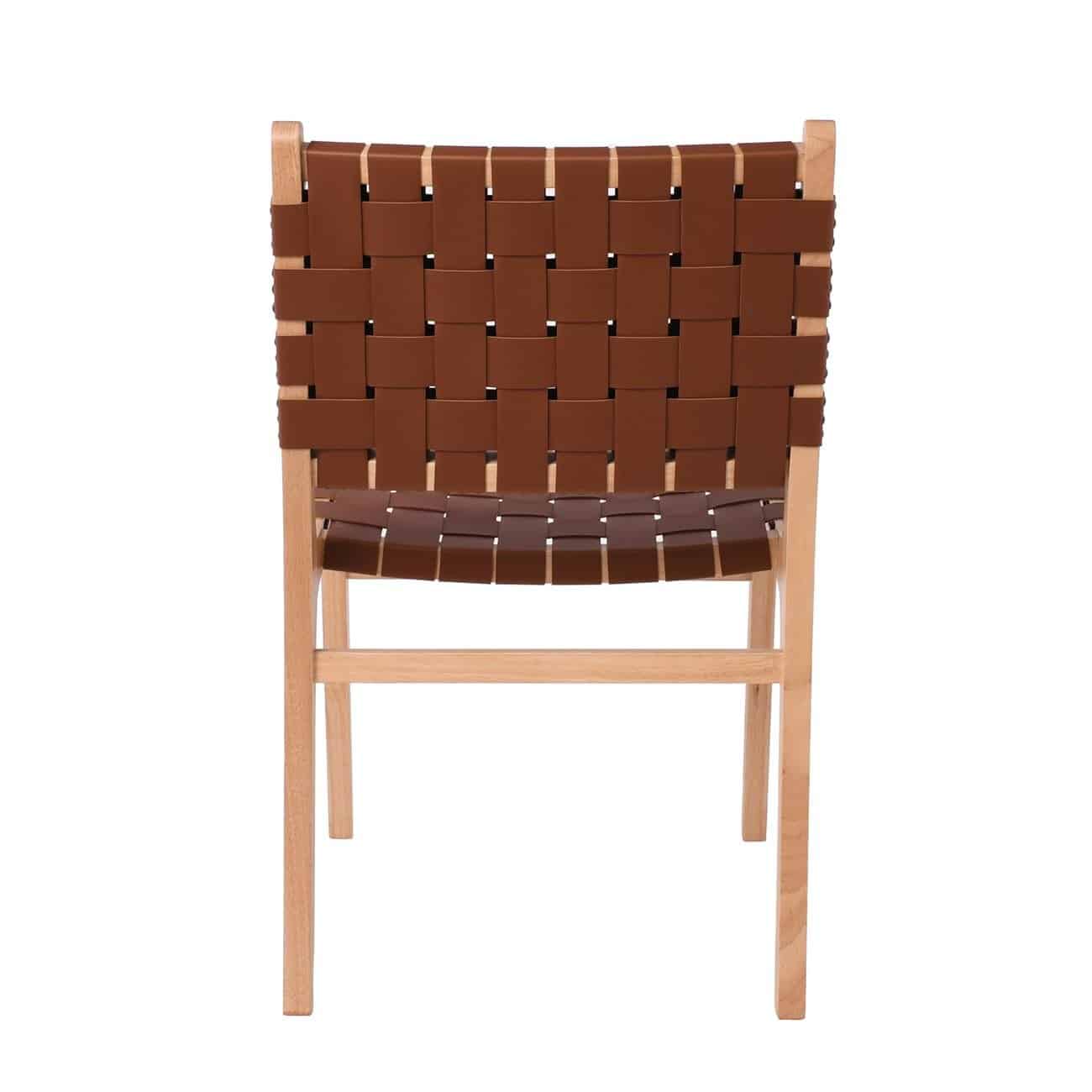 DUNE Καρέκλα Τραπεζαρίας, Ξύλο Απόχρωση Φυσικό, Κάθισμα-Πλάτη Ιμάντες Pu Καφέ (Ε-00025085)