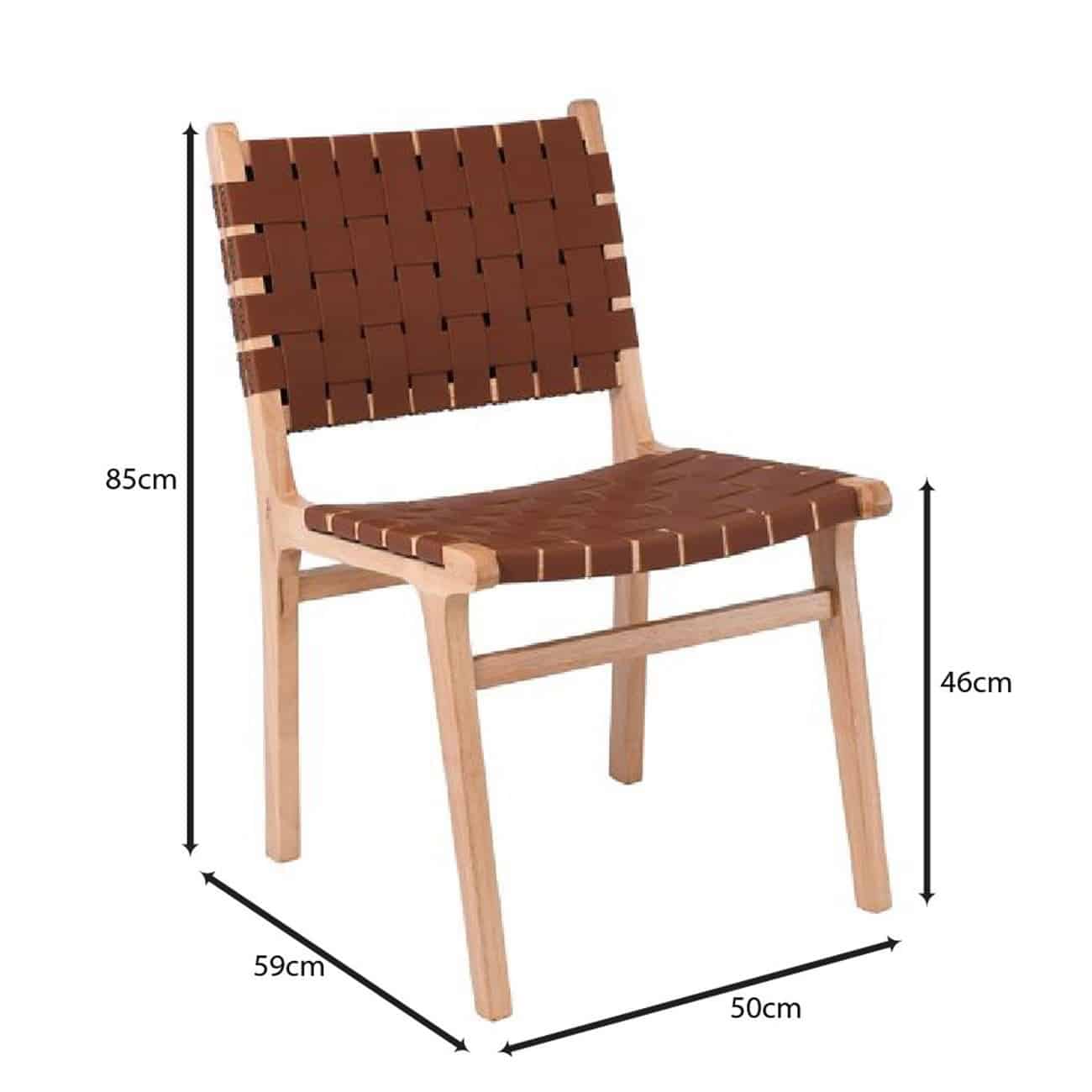 DUNE Καρέκλα Τραπεζαρίας, Ξύλο Απόχρωση Φυσικό, Κάθισμα-Πλάτη Ιμάντες Pu Καφέ 50x59x85cm