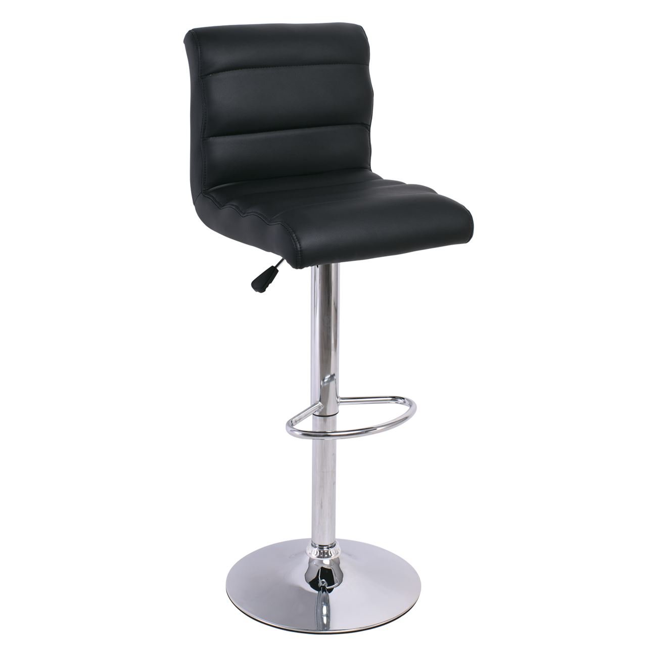 DYLAN Σκαμπό BAR με Πλάτη, Χρώμιο, Pu Μαύρο, Ρυθμιζόμενο Ύψος, Περιστρεφόμενο (Ε-00012636)