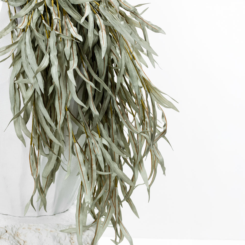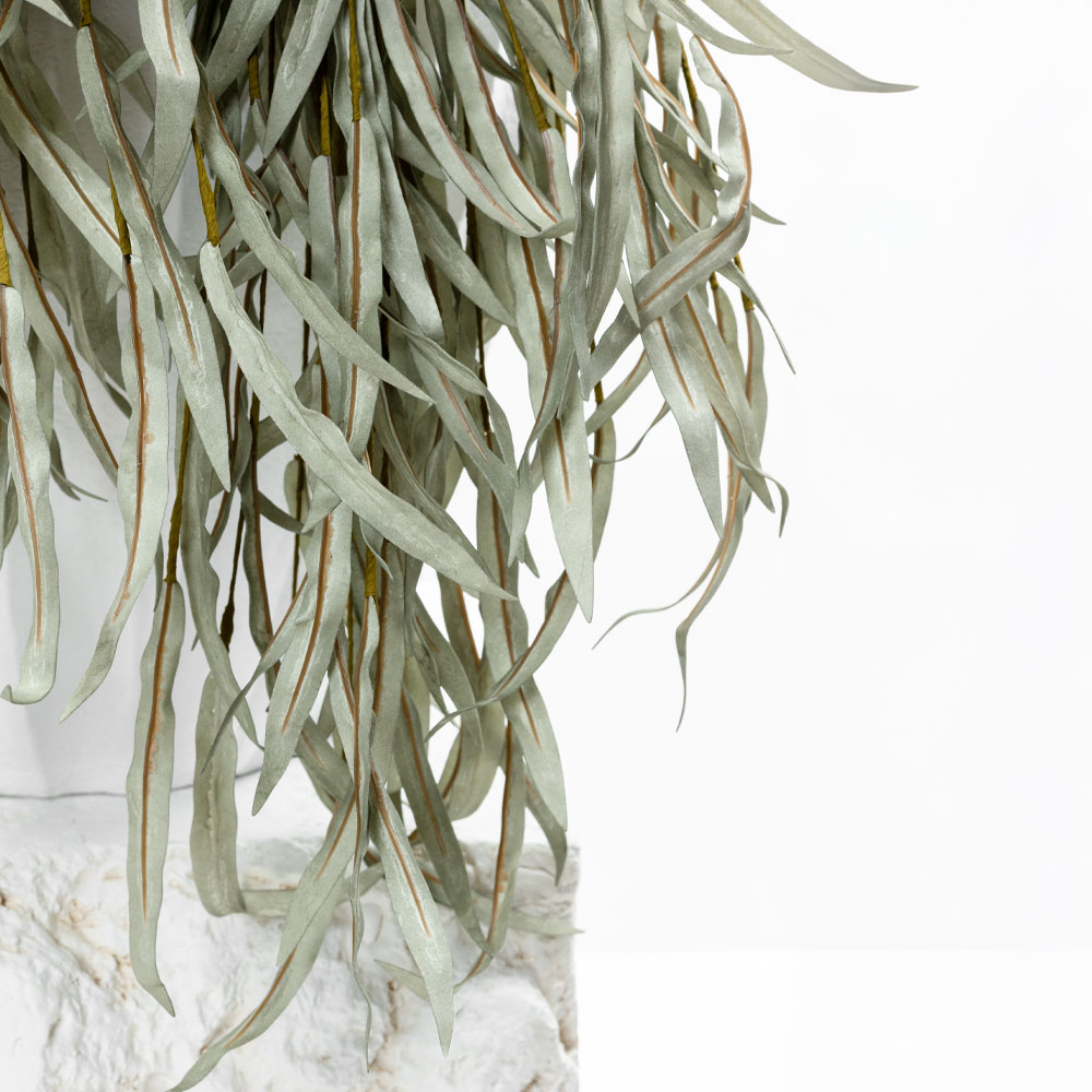 Το EUCALYPTUS BLOOMS είναι ένα τεχνητό κλαδί με λεπτή γραμμή και απαλή κίνηση, που φέρνει στον χώρο μια αίσθηση φρεσκάδας και ηρεμίας. Τα μακριά, φίνα φύλλα του σε απαλή πράσινη απόχρωση ανοίγουν φυσικά προς τα έξω, θυμίζοντας φρέσκο ευκάλυπτο και χαρίζοντας ένα ήσυχο, ανάλαφρο αποτέλεσμα.