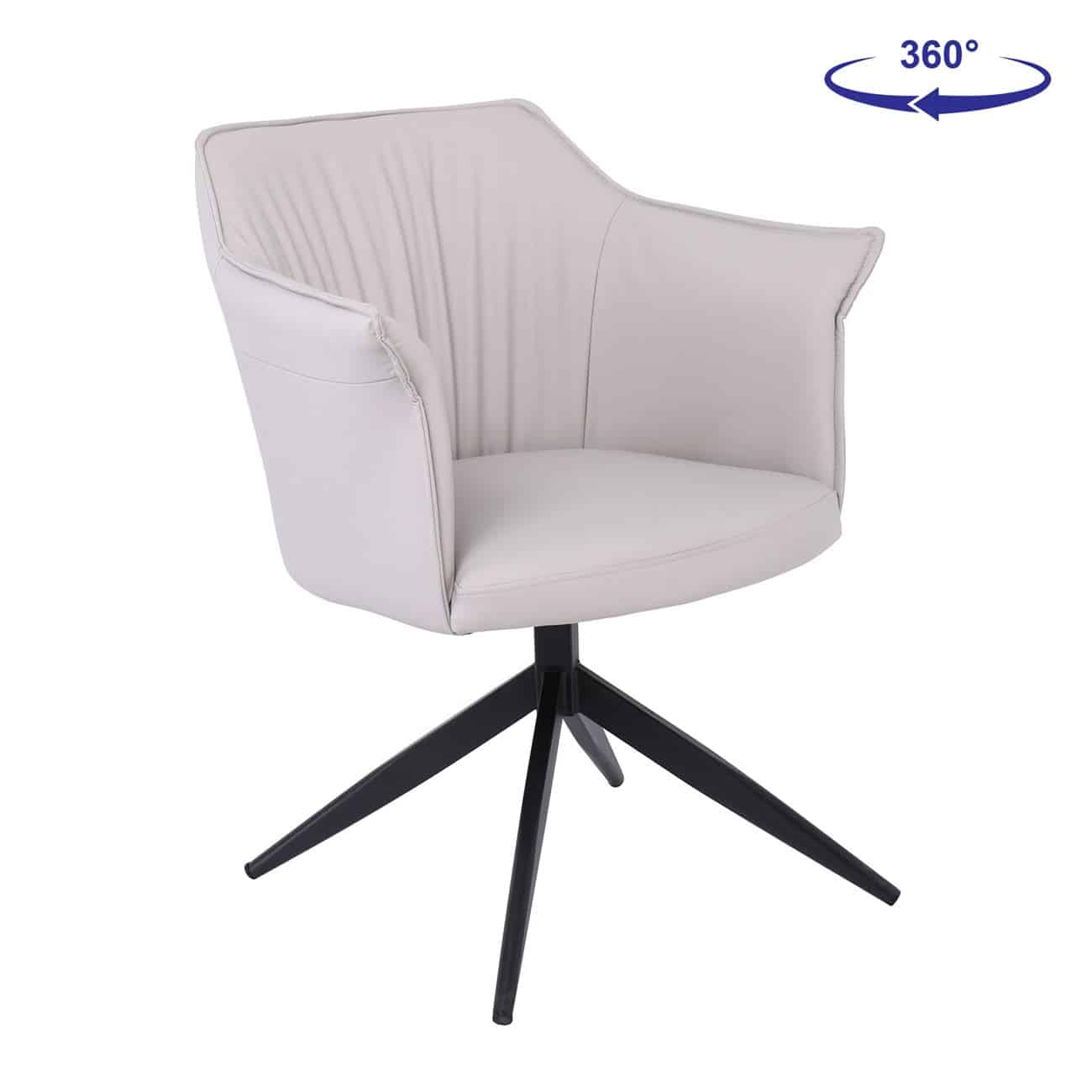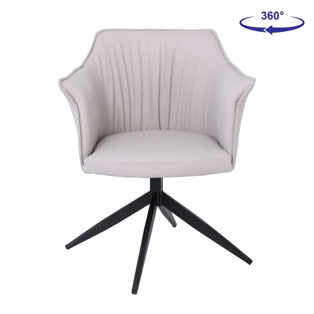 EVELYN Πολυθρόνα Περιστρεφόμενη, Μέταλλο Βαφή Μαύρο, Pu Γκρι-Μπεζ 64x63x80cm