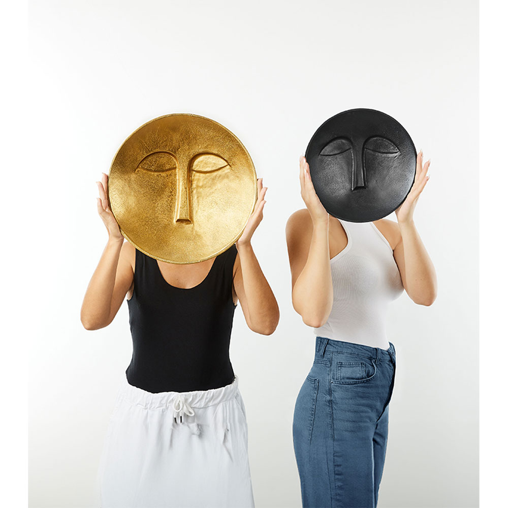 Η ανάγλυφη μορφή στο διακοσμητικό τοίχου Face σε συνδυασμό με την αφαιρετική αισθητική του, προσφέρει ένα εξαιρετικά καλαίσθητο αποτέλεσμα. Το αλουμίνιο το καθιστά πολύ εύκολο στην τοποθέτηση ενώ το χρυσό χρώμα ενισχύει το αρχαικό του ύφος. Το διακοσμητικό τοίχου Face, χωρίς περιττές υπερβολές, θα αναδείξει τη διαχρονικότητα και την κομψότητα σε κάθε χώρο.
