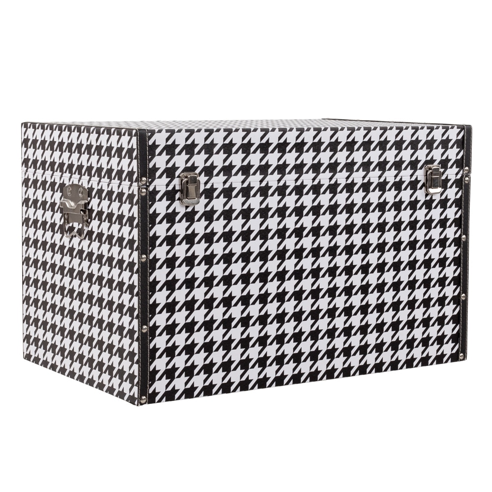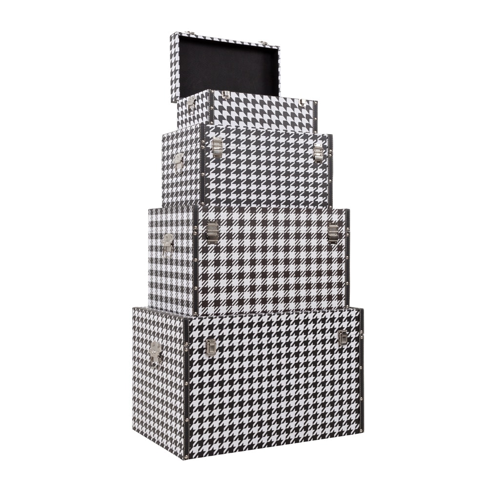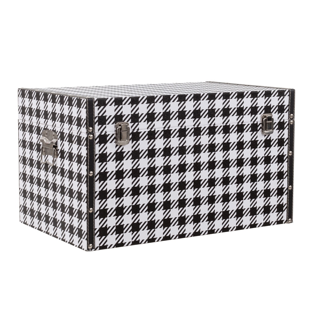 Το σετ Ferre αποτελείται από 4 αποθηκευτικά μπαούλα, σχεδιασμένα για να προσθέσουν στυλ και πρακτικότητα σε κάθε χώρο. Κατασκευασμένα από MDF, διαθέτουν εξωτερική επένδυση από καμβά σε έναν κομψό συνδυασμό μαύρου και λευκού με μοτίβο που προσδίδει μια διαχρονική αισθητική. Οι μεταλλικές λεπτομέρειες ενισχύουν τη στιβαρότητα της κατασκευής, ενώ το ευρύχωρο εσωτερικό τους προσφέρει λειτουργική αποθήκευση για ρούχα, αξεσουάρ ή οικιακά αντικείμενα. Το σετ Ferre είναι ιδανικό τόσο για μοντέρνα όσο και για κλασικά διακοσμητικά στυλ, χαρίζοντας οργάνωση και φινέτσα σε κάθε δωμάτιο.