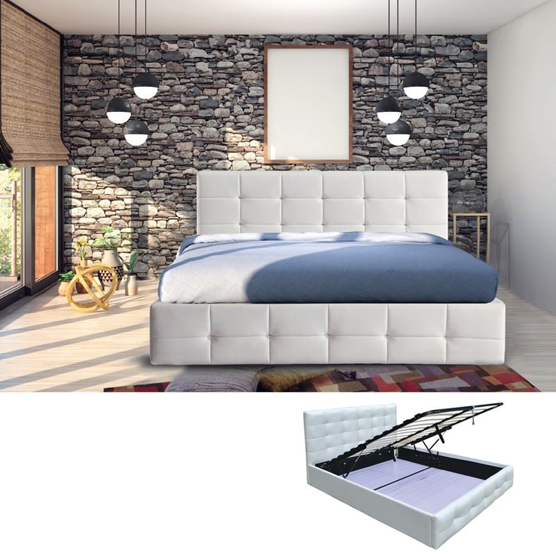 FIDEL Κρεβάτι Διπλό με Αποθηκευτικό Χώρο, για Στρώμα 160x200cm, PU Άσπρο 168x215x107cm