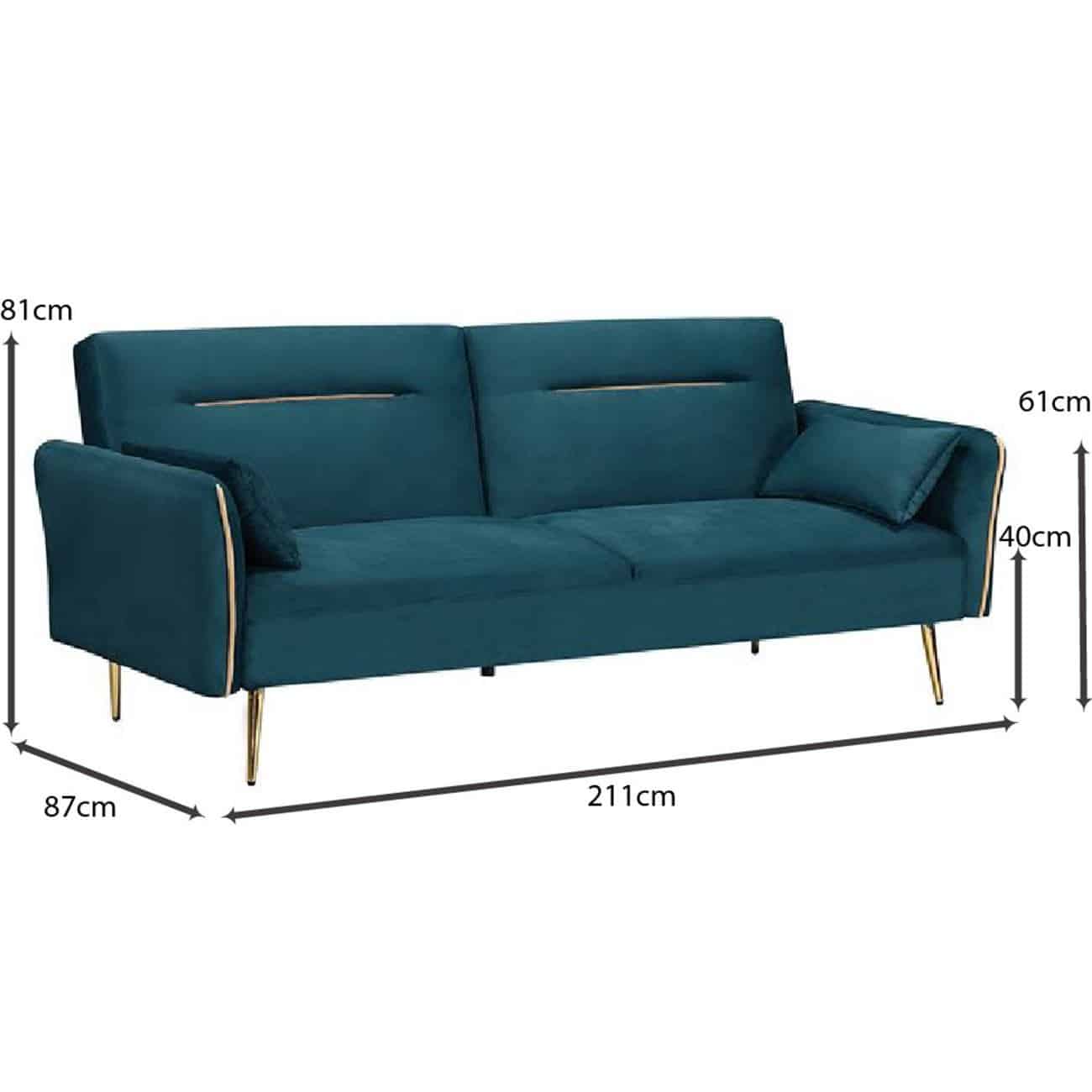 FLICK Καναπές – Κρεβάτι Σαλονιού – Καθιστικού, 3Θέσιος Ύφασμα Velure Petrol Sofa:211x87x81-Bed:185x111x40