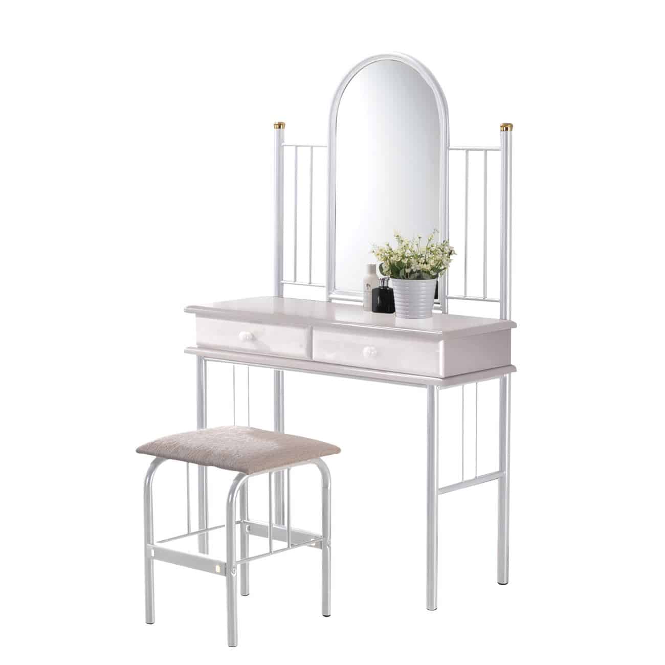 FLORA SET Τουαλέτα με Καθρέπτη + Σκαμπό 2 Συρτάρια, Μέταλλο Βαφή Άσπρο, Ξύλο Άσπρο (Ε-00023333)