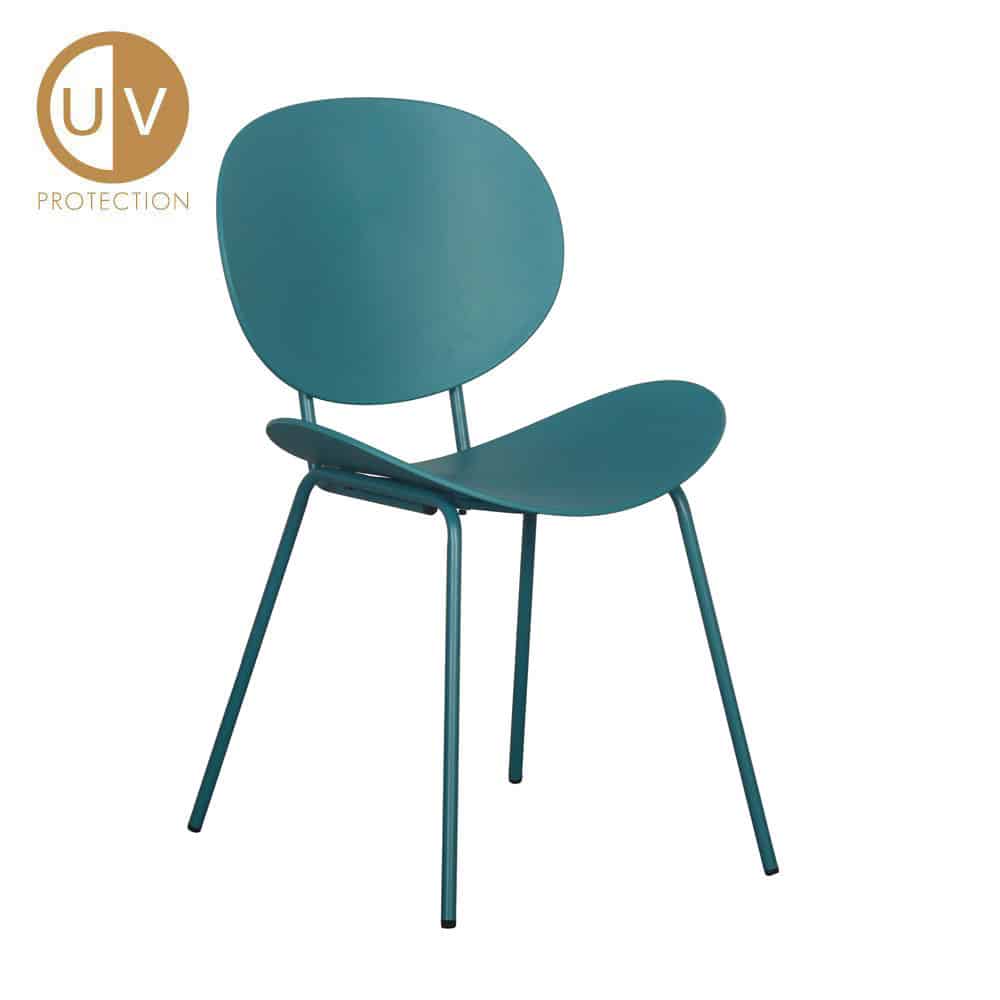 Η καρέκλα Futura εντυπωσιάζει με τον μοντέρνο και μίνιμαλ σχεδιασμό της, προσφέροντας υψηλή αισθητική και άνεση. Είναι κατασκευασμένη από πολυπροπυλένιο (PP) σε πετρόλ απόχρωση, ενώ διαθέτει μεταλλικά πόδια στο ίδιο χρώμα για μία αρμονική και κομψή εμφάνιση. Διαθέτει UV προστασία, εξασφαλίζοντας αντοχή στον χρόνο και στις καιρικές συνθήκες, ακόμα και υπό συνεχή έκθεση στον ήλιο.