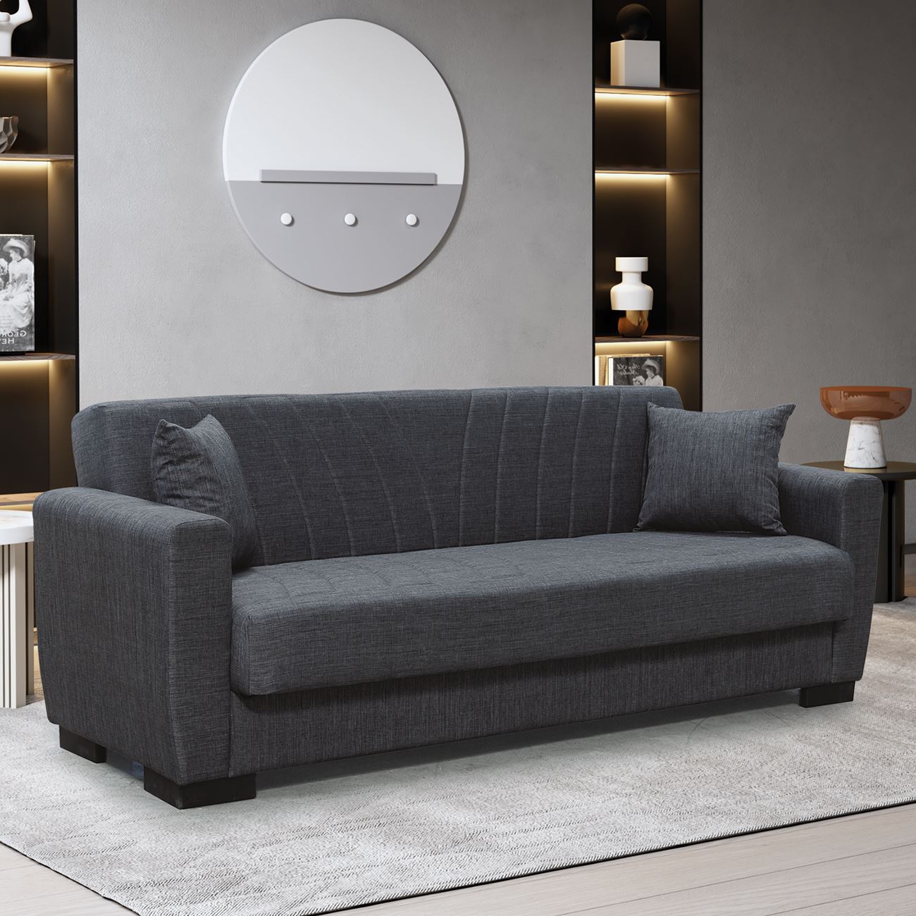 GALAXY Καναπές – Κρεβάτι με Αποθηκευτικό Χώρο, 3Θέσιος Ύφασμα Σκούρο Γκρι (Ε-00025788)