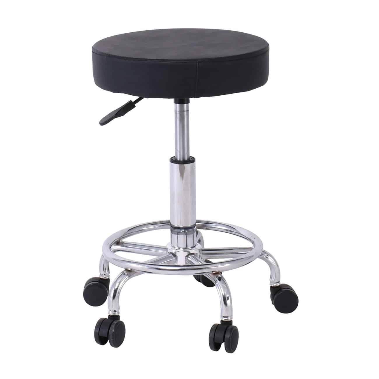 GLORY Σκαμπό με υποπόδιο, Βάση Χρώμιο, PU Μαύρο, Περιστρεφόμενο, Τροχήλατο (Ε-00025776)