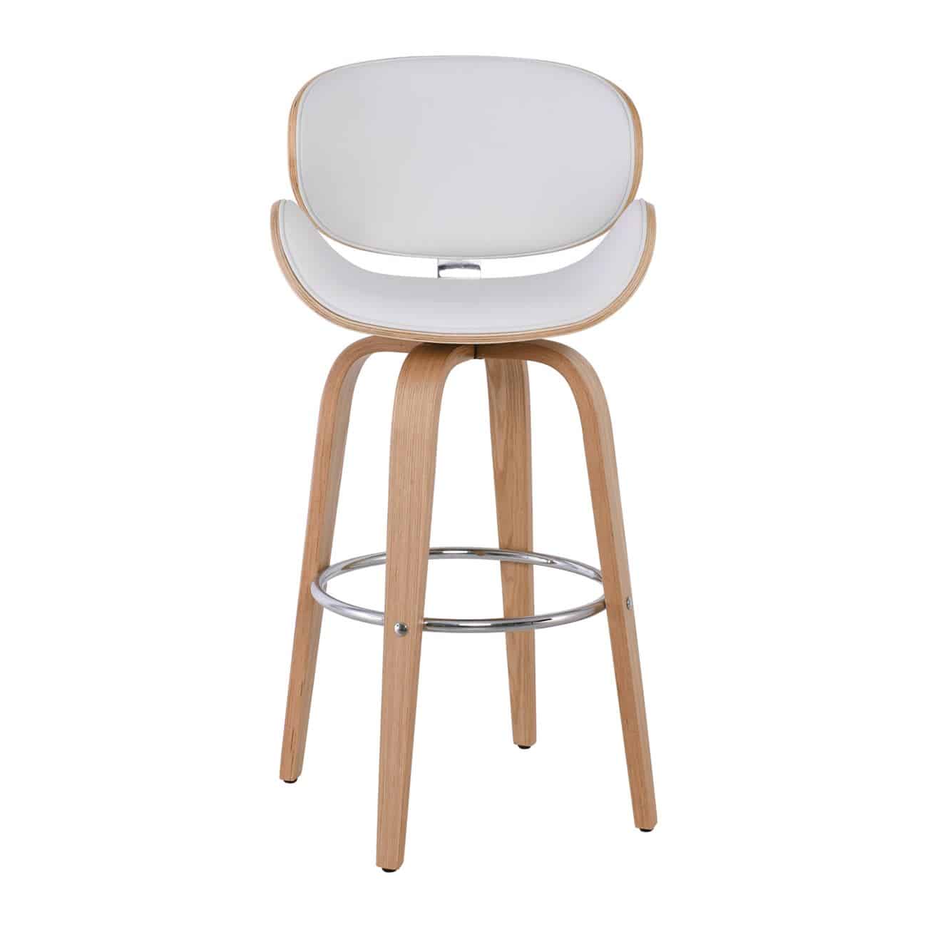 GOMEZ Σκαμπό BAR με Πλάτη, Απόχρωση Φυσικό, PU Άσπρο, Περιστρεφόμενο (Ε-00021404)