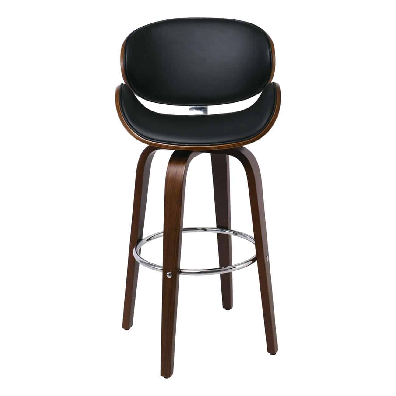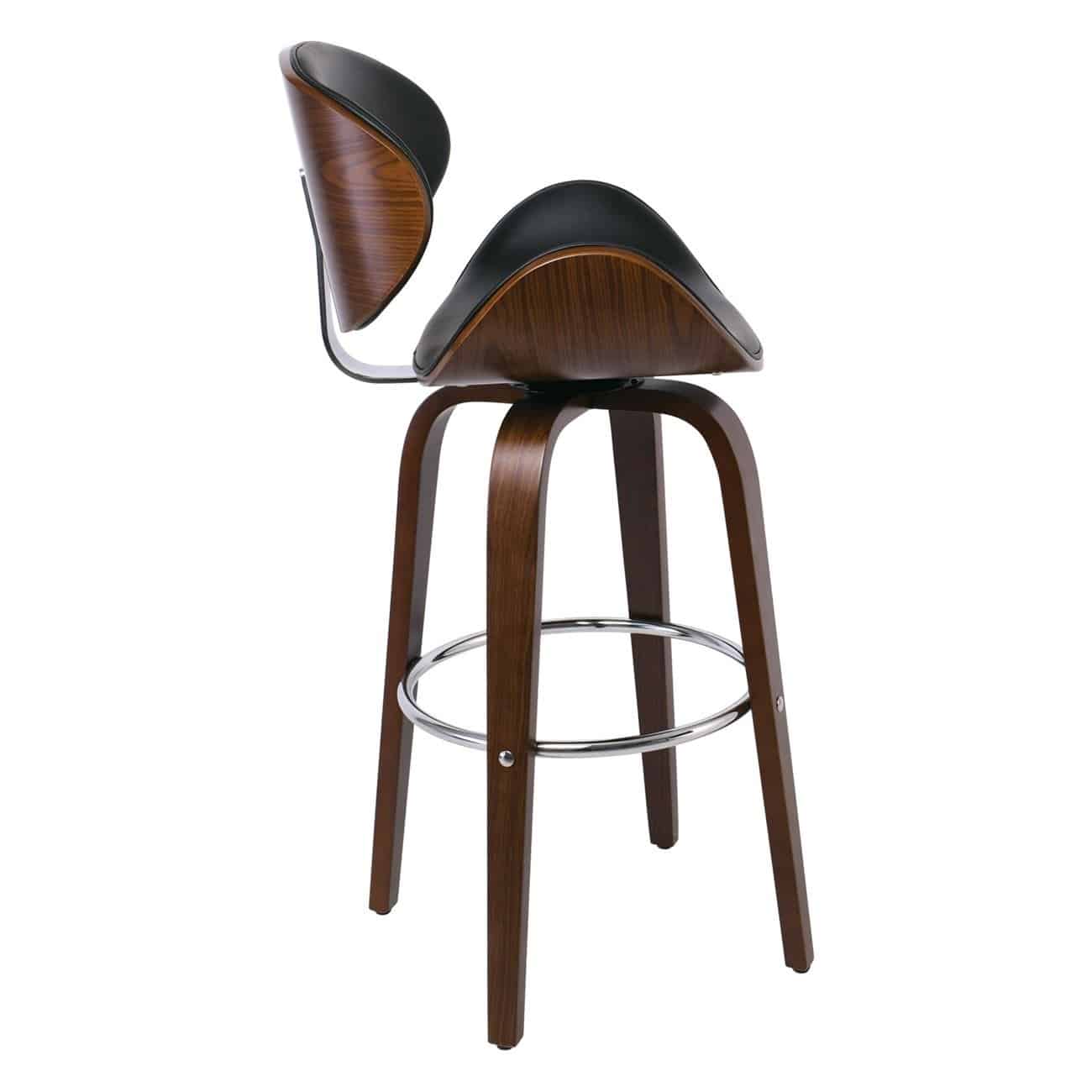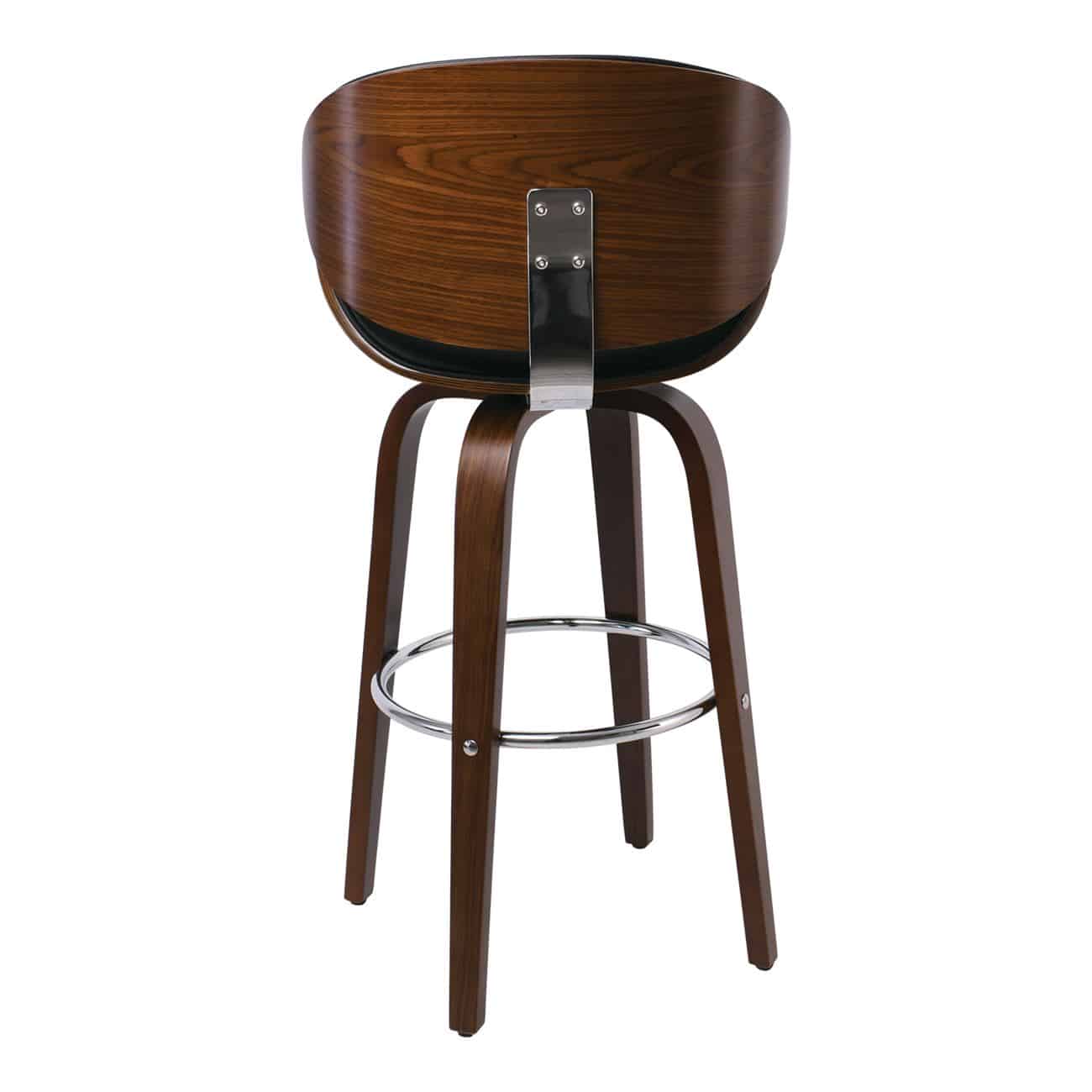 GOMEZ Σκαμπό BAR με Πλάτη, Απόχρωση Καρυδί, PU Μαύρο Περιστρεφόμενο (Ε-00021100)