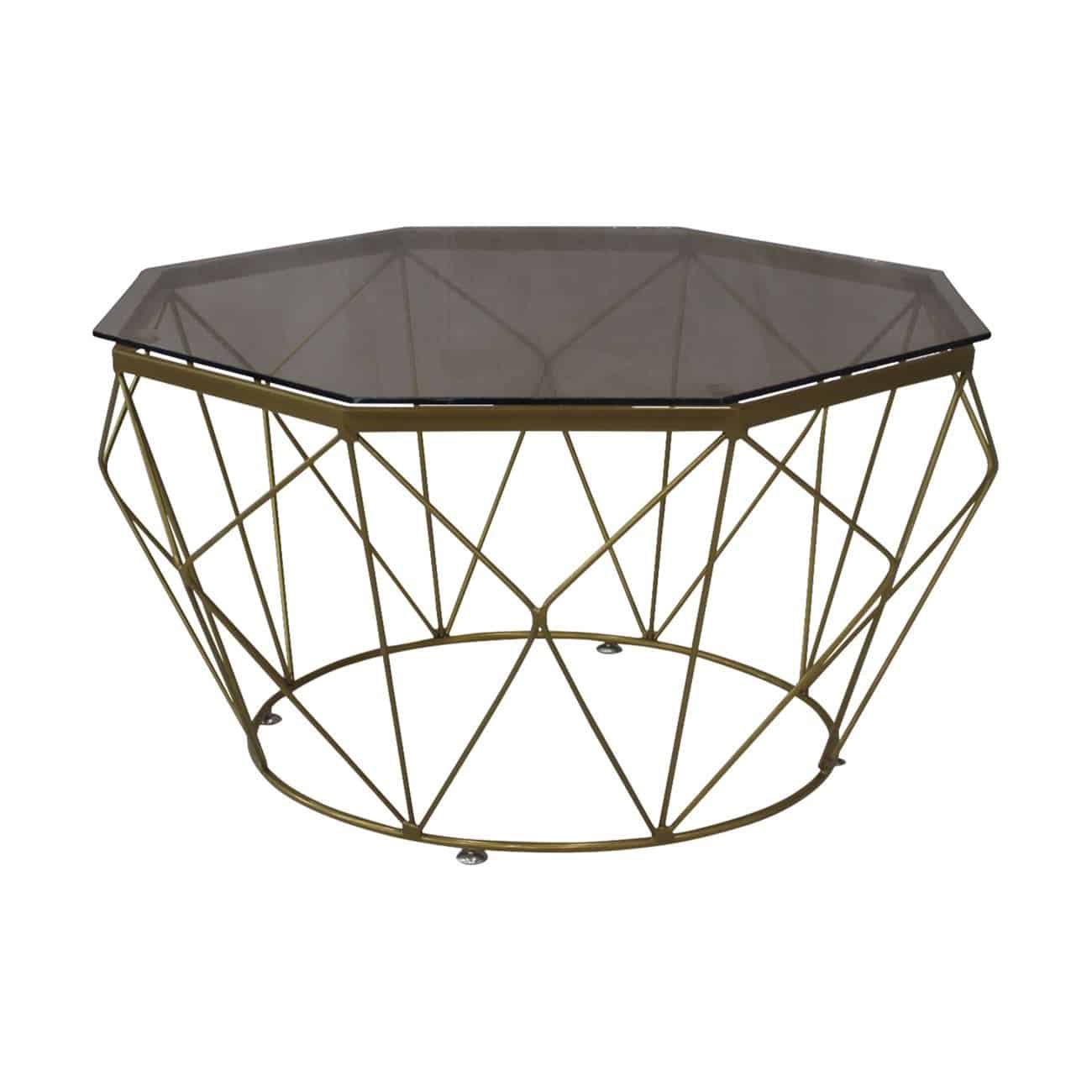ΕΜ522,2 GRID Τραπ.Σαλονιού Οκτάγωνο Φ80cm Μέταλλο Βαφή Χρυσό/Γυαλί Tea Color