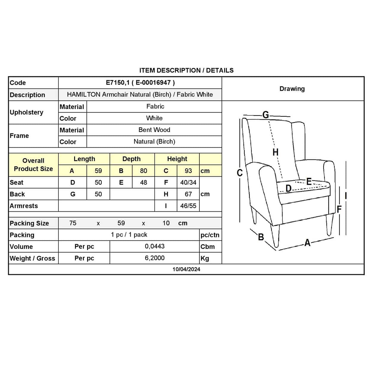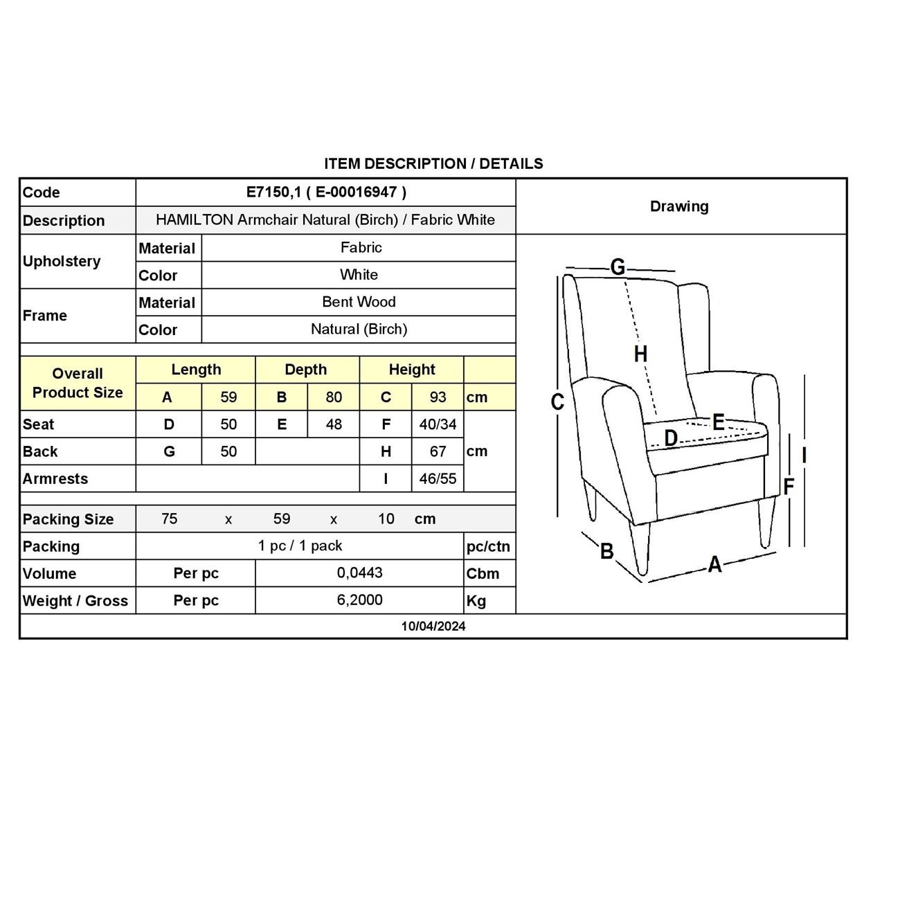 Ε7150,1 – HAMILTON Πολυθρόνα Σημύδα/Ύφασμα Άσπρο