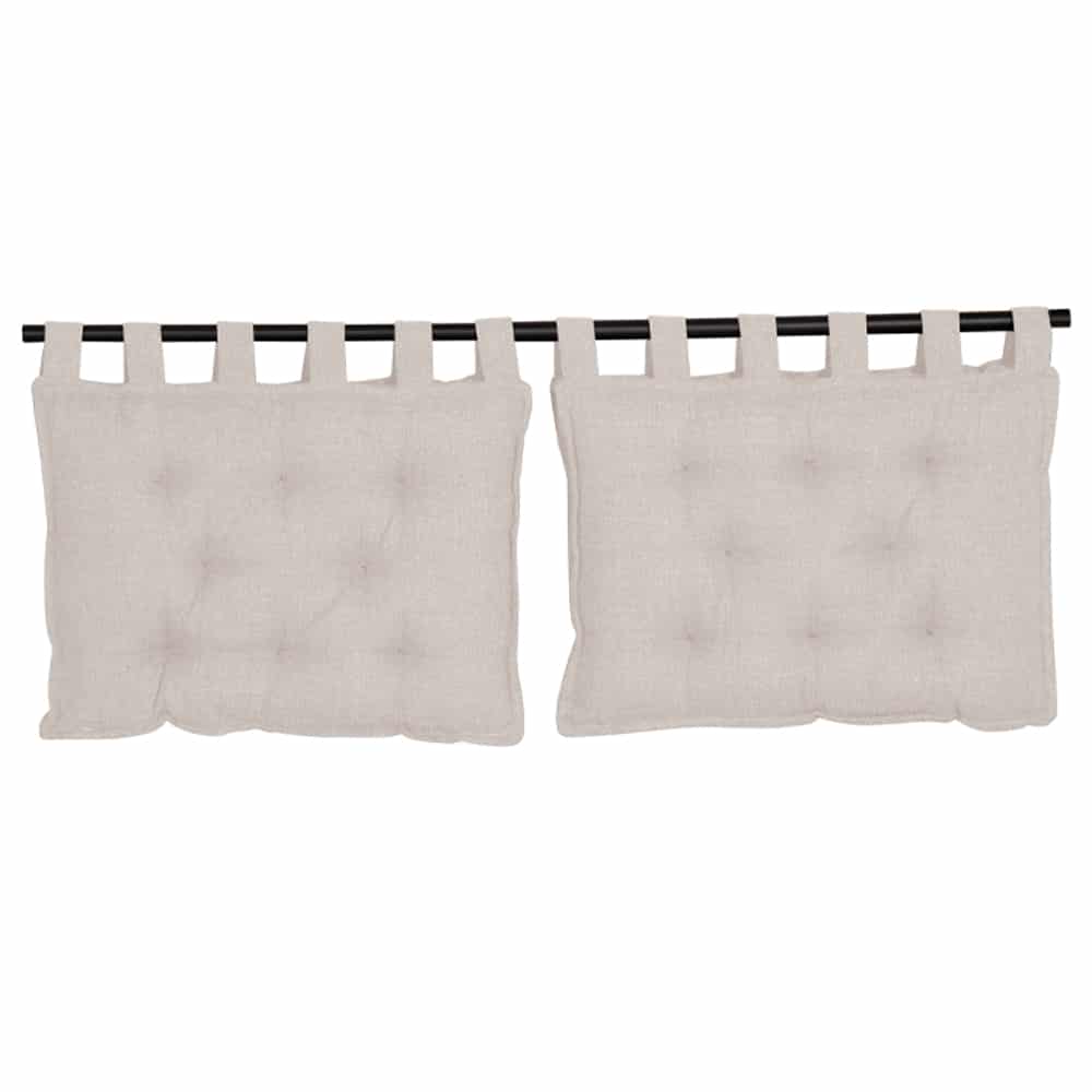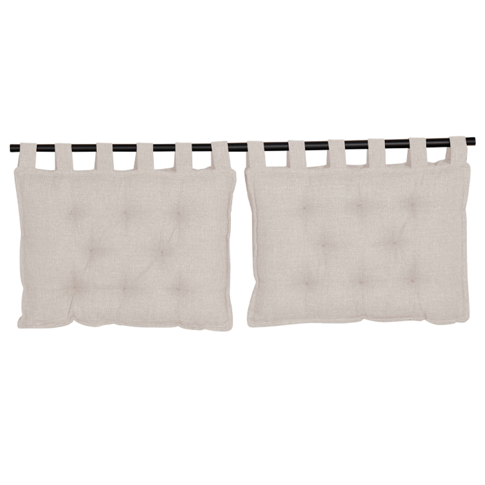 Προσθέστε μια κομψή και πρακτική πινελιά στο υπνοδωμάτιό σας με το σετ 2 μαξιλαριών κεφαλαριού Hang. Επενδυμένα με ύφασμα τύπου λινό σε εκλεπτυσμένη off white απόχρωση, τα μαξιλάρια αυτά προσφέρουν μοναδική αίσθηση άνεσης και διαχρονική αισθητική. Ο προσεγμένος σχεδιασμός με κουμπωτές λεπτομέρειες αποπνέει φινέτσα και στυλ, καθιστώντας τα ιδανικά για να αναβαθμίσουν τη διακόσμηση του κρεβατιού σας. Η κρέμαση δεν περιλαμβάνεται, επιτρέποντάς σας να τα προσαρμόσετε εύκολα στις δικές σας ανάγκες. Ένα σετ που συνδυάζει την αισθητική με τη λειτουργικότητα, αναδεικνύοντας τον χώρο σας.