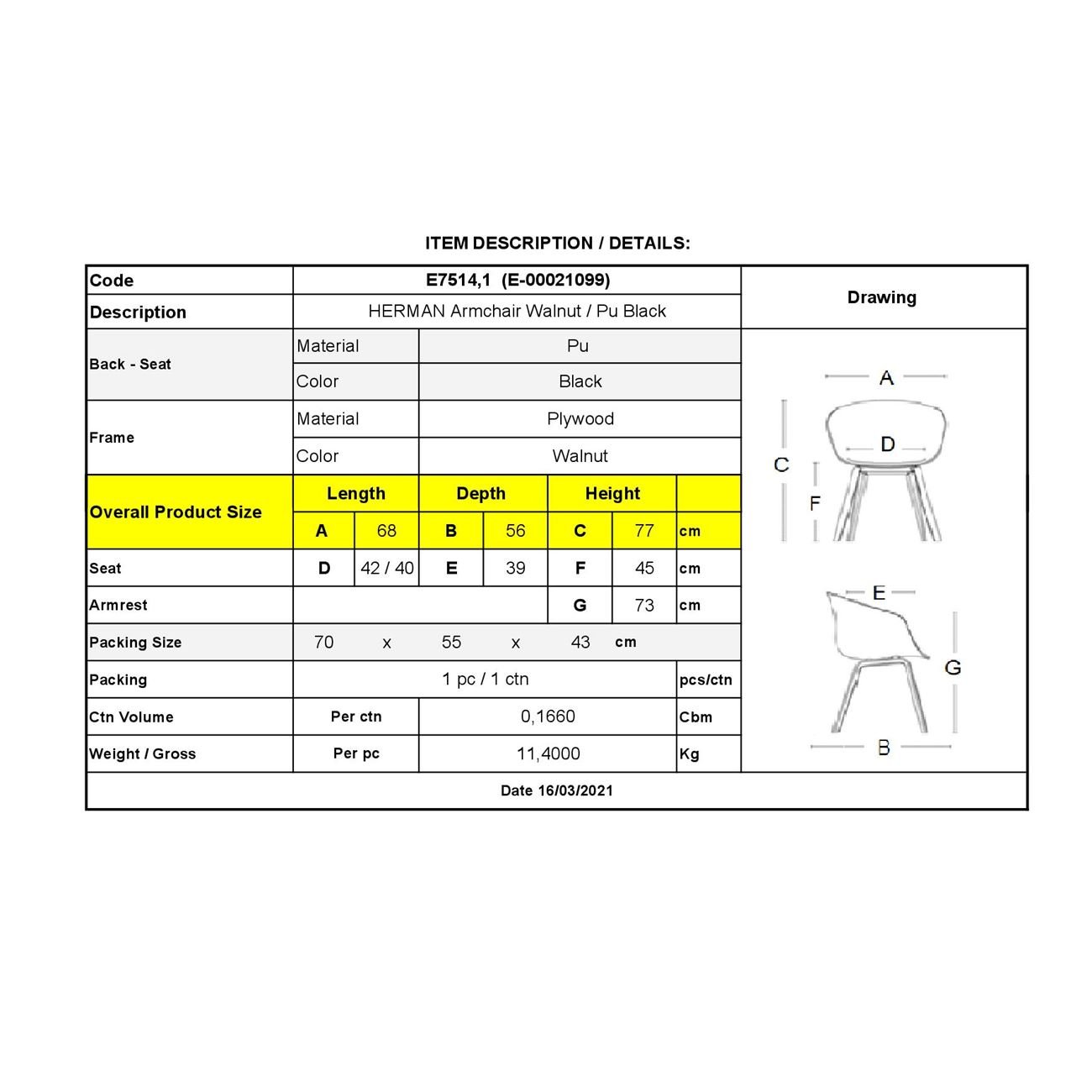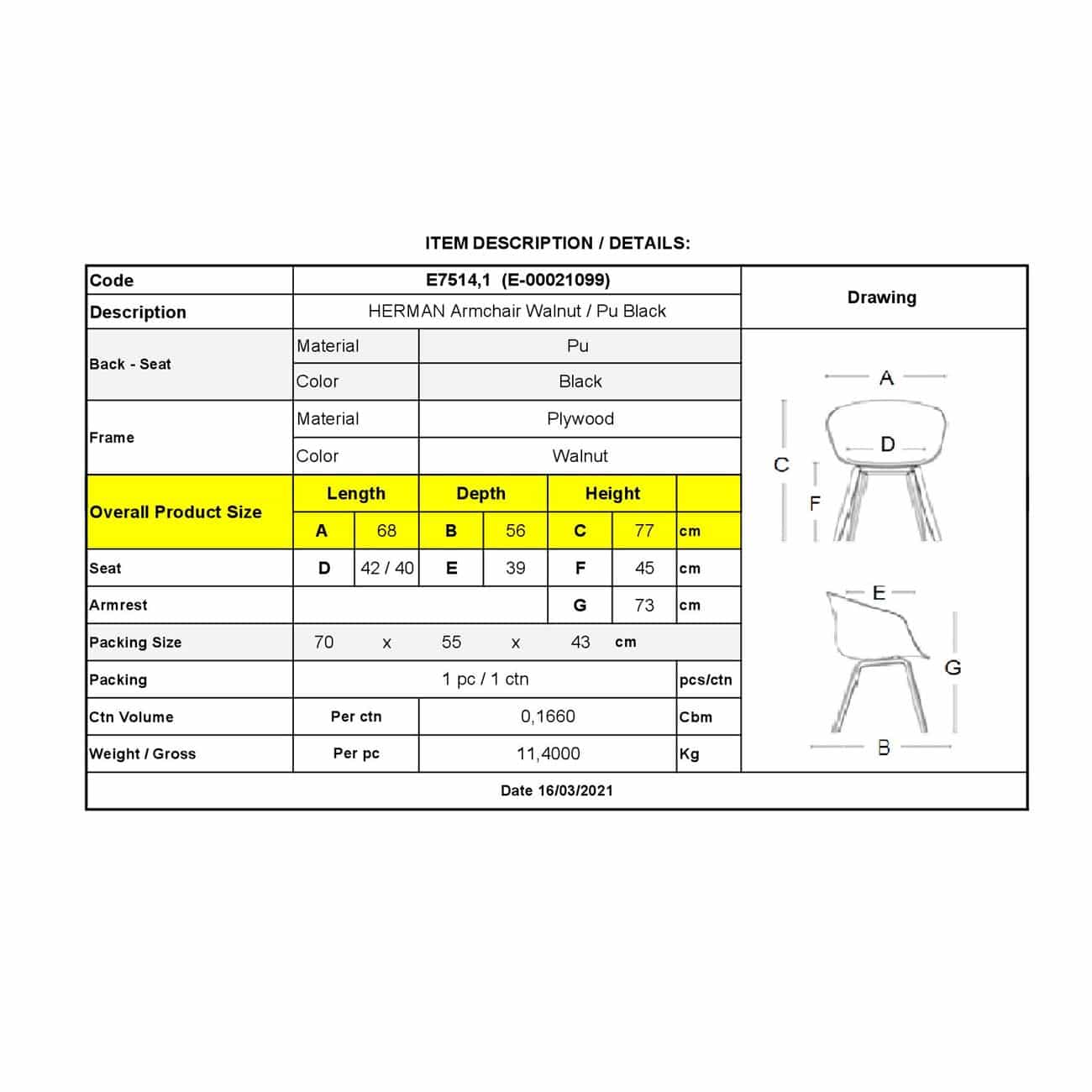 HERMAN Πολυθρόνα Καρυδί – Pu Μαύρο 68x56x77cm