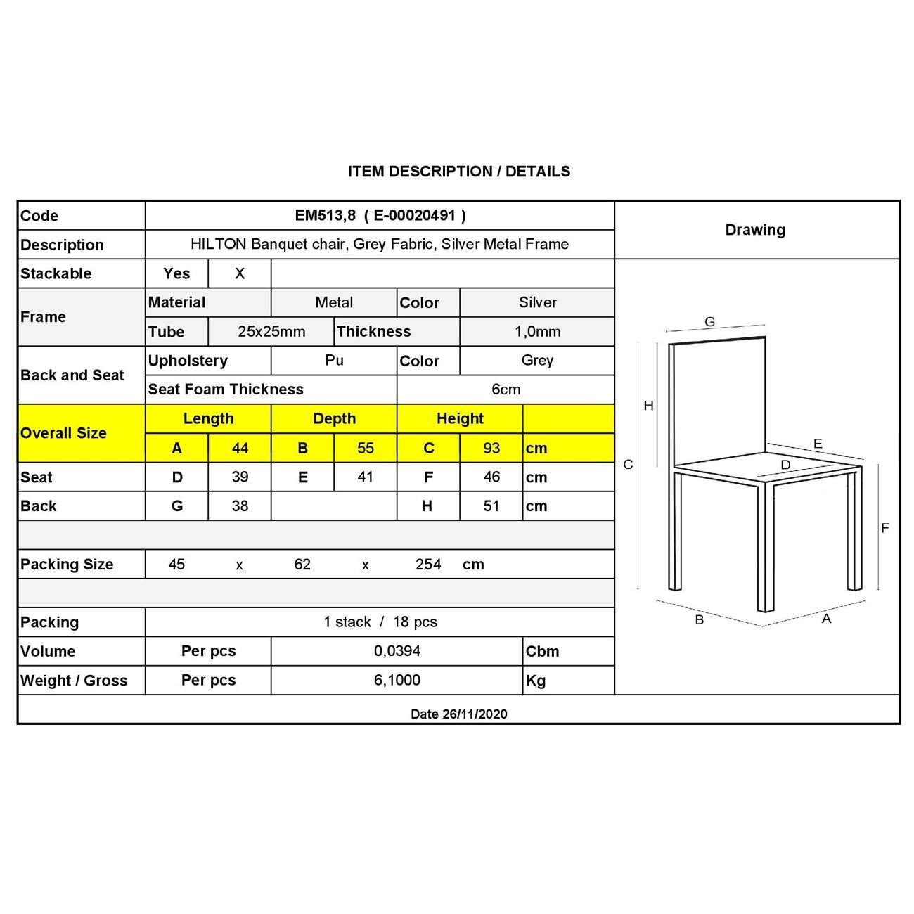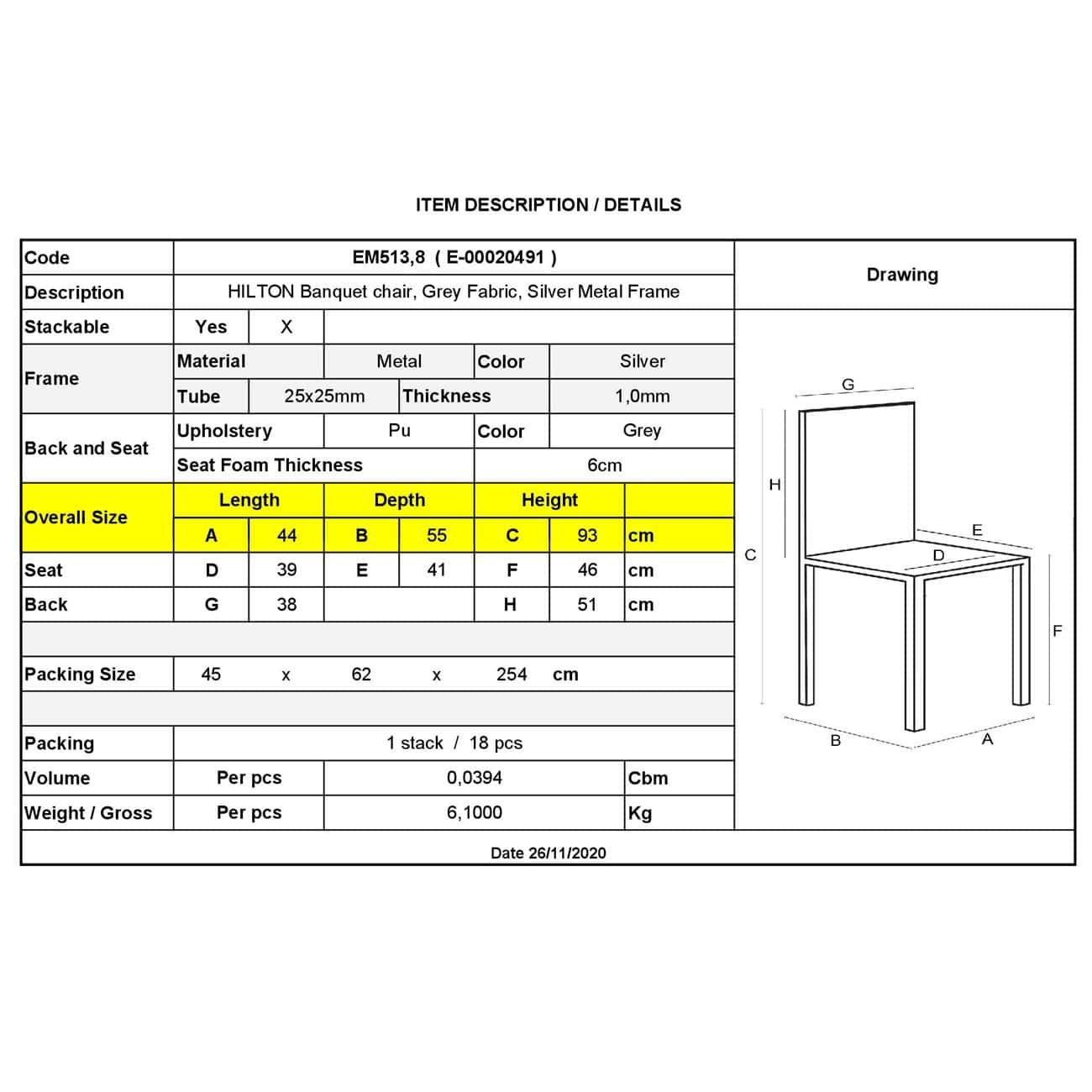 ΕΜ513,8 HILTON Καρέκλα Μεταλλική Silver Ύφασμα Γκρι