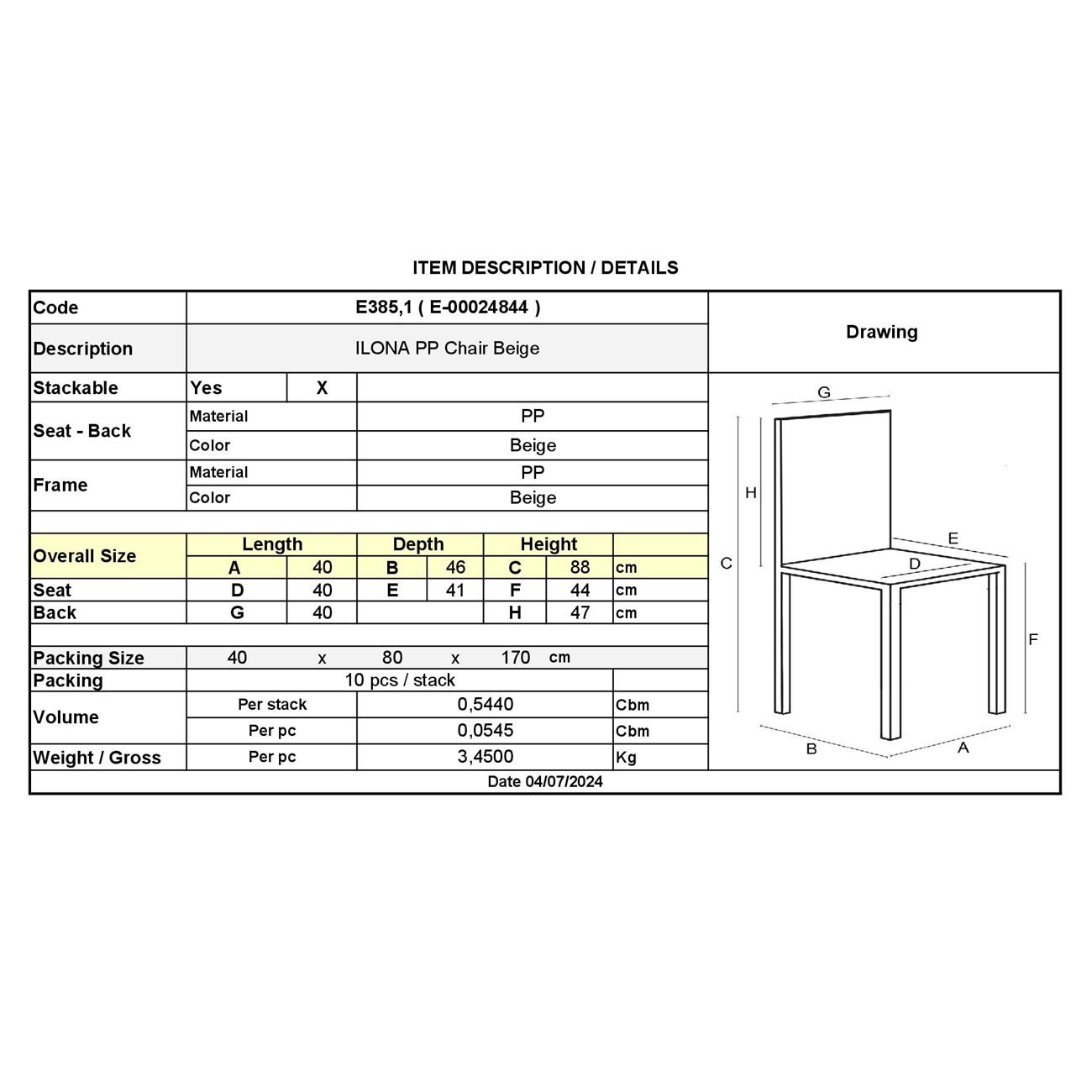 Ε385,1 ILONA Καρέκλα-Pro PP Μπεζ