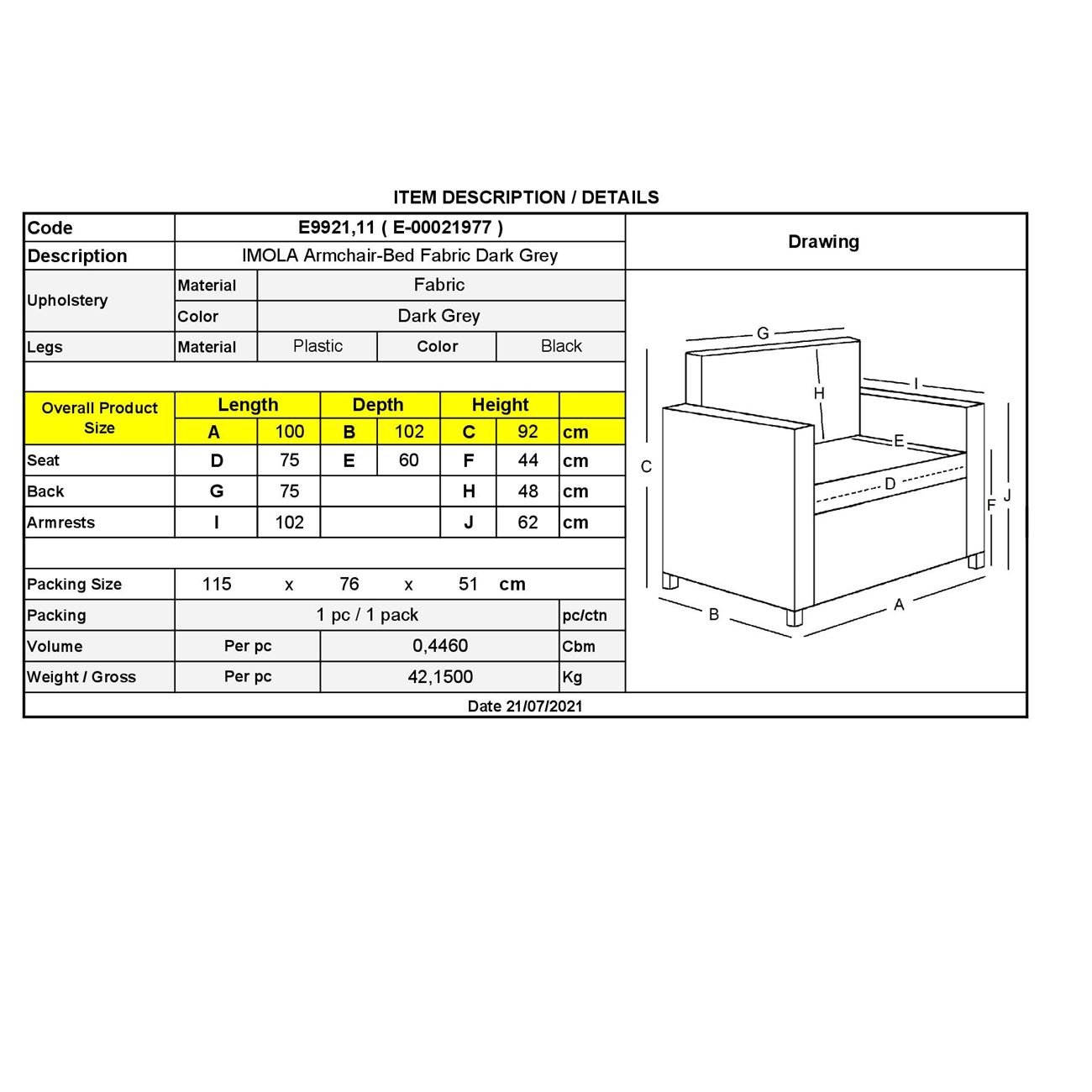 Ε9921,11 IMOLA Πολυθρόνα-Κρεβάτι Ύφασμα Σκούρο Γκρι