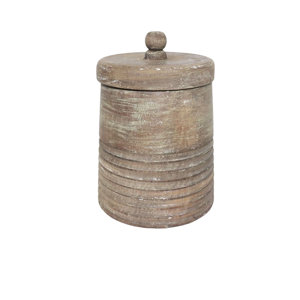 INDI ΔΟΧΕΙΟ ΑΠΟΘΗΚΕΥΣΗΣ ΜΕ ΚΑΠΑΚΙ 12x12x17cm ΞΥΛΟ ΦΥΣΙΚΟ ANTIKE 026517
