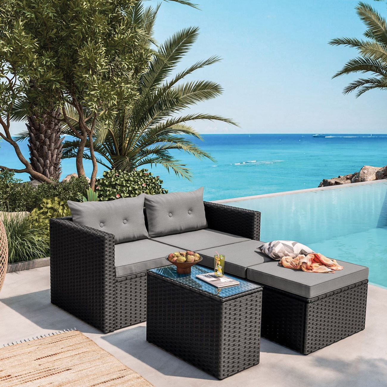 JAKARTA Set Σαλόνι Κήπου K/D, Πολυμορφικό 5τ, Μέταλλο-Wicker Μαύρο, Μαξιλάρια Γκρι (Ε-00026871)