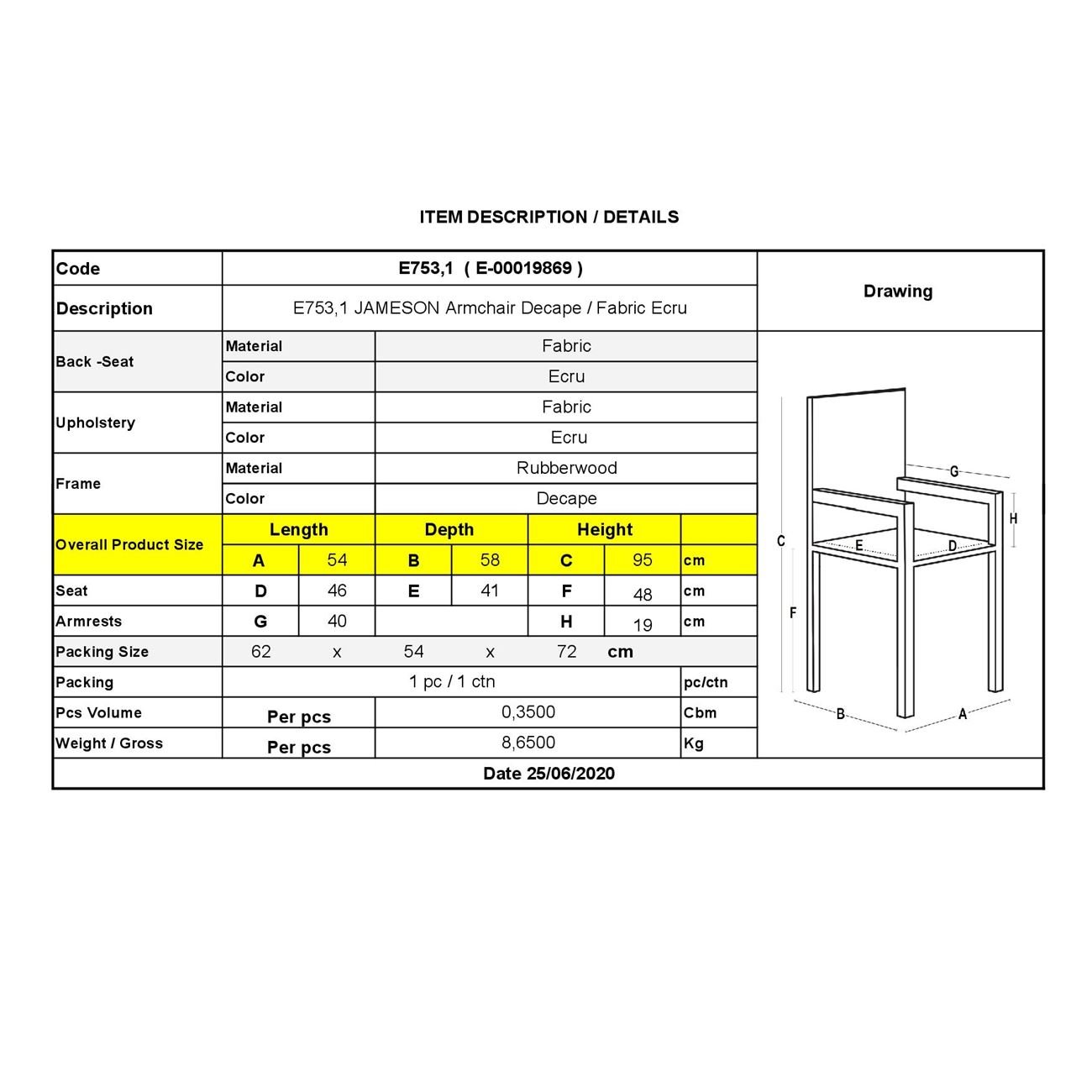 Ε753,1 JAMESON Πολυθρόνα Decape/Ύφασμα Εκρού