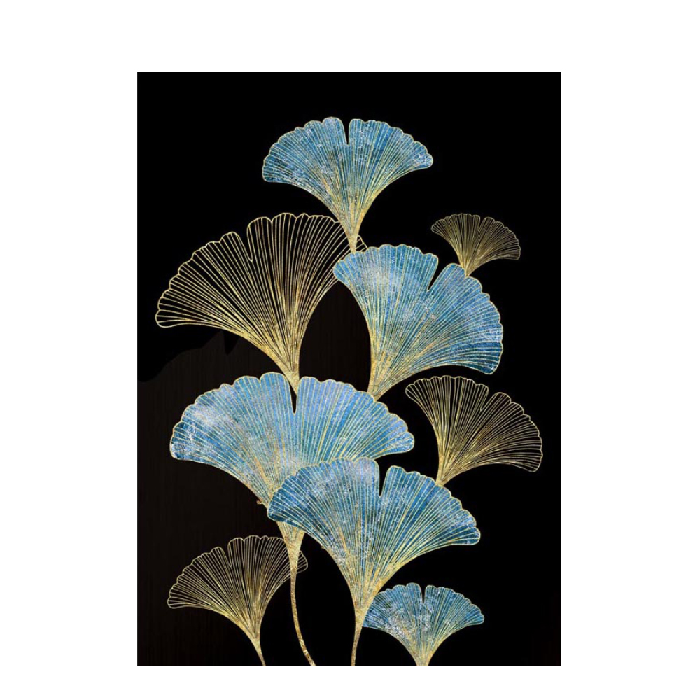 Ο πίνακας JANGALA αναδεικνύει κομψή τροπική φύλλωμα σύνθεση, όπου μπλε και χρυσές λεπτομέρειες δημιουργούν μια αίσθηση πολυτέλειας και ηρεμίας. Το σκούρο φόντο δίνει βάθος και κάνει τα φωτεινά φύλλα να ξεχωρίζουν σαν τρισδιάστατα. Η εκτύπωση σε καμβά αναδεικνύει τις υφές και προσθέτει premium αισθητικό αποτέλεσμα. Ιδανικός πίνακας για σαλόνια, εισόδους, υπνοδωμάτια και χώρους με μοντέρνα tropical διακόσμηση.