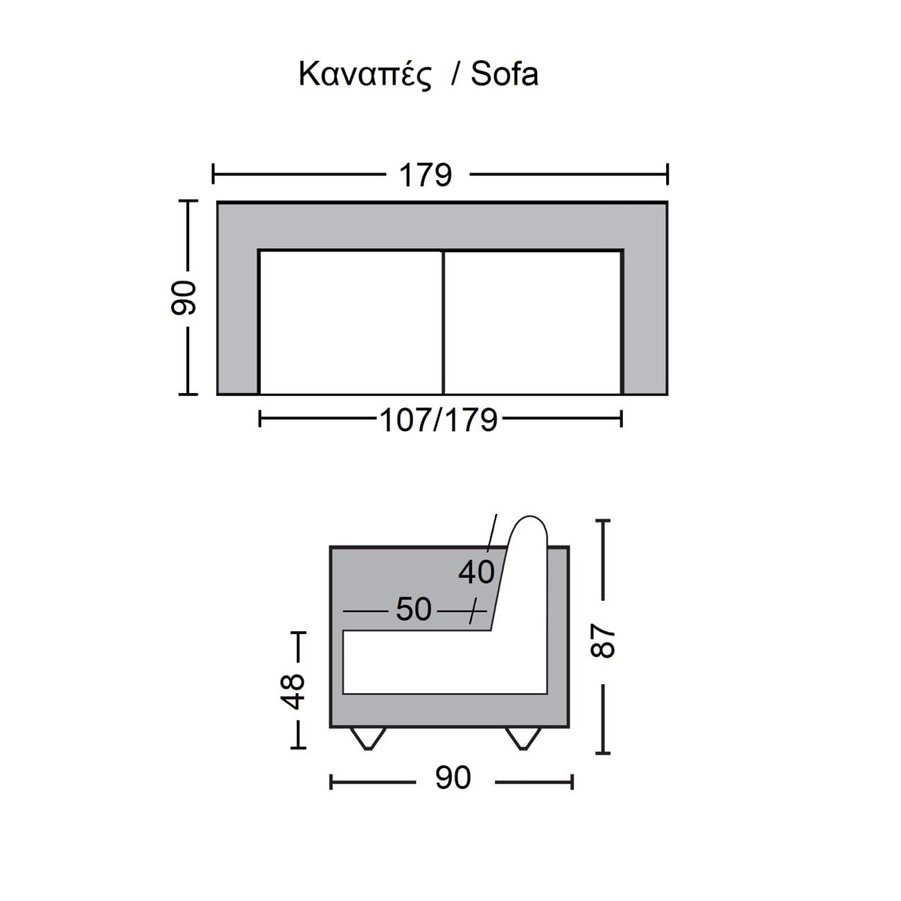 JAY Καναπές – Κρεβάτι Σαλονιού – Καθιστικού, Ύφασμα Γκρι 179x90x87cm Bed:179x110x48cm