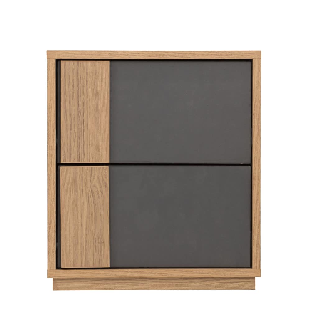 Το κομοδίνο Jenga συνδυάζει μοντέρνα αισθητική και λειτουργικότητα, ιδανικό για κάθε σύγχρονο υπνοδωμάτιο. Είναι κατασκευασμένο από επένδυση μελαμίνης σε ανοιχτόχρωμη φυσική απόχρωση ξύλου δρυός (Sonoma) και σκούρο γκρι, δημιουργώντας μια κομψή αντίθεση. Διαθέτει δύο ευρύχωρα συρτάρια που προσφέρουν πρακτική αποθήκευση, ενώ η λιτή και καλαίσθητη σχεδίασή του το καθιστά ιδανικό για κάθε χώρο. Ένα έπιπλο που συνδυάζει στυλ και χρηστικότητα.