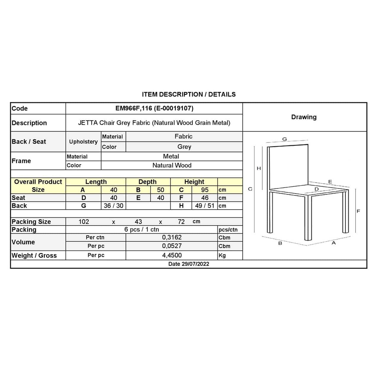 ΕΜ966F,116 JETTA Καρέκλα Ύφ.Γκρι/Μεταλ.Φυσικό (Συσκ.6)