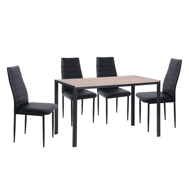 JETTA-GABO Τραπεζαρία Κουζίνας Μέταλλο Βαφή Μαύρο, Τραπέζι Sonoma + 4 Καρέκλες Pvc Μαύρο  (Ε-00023331)