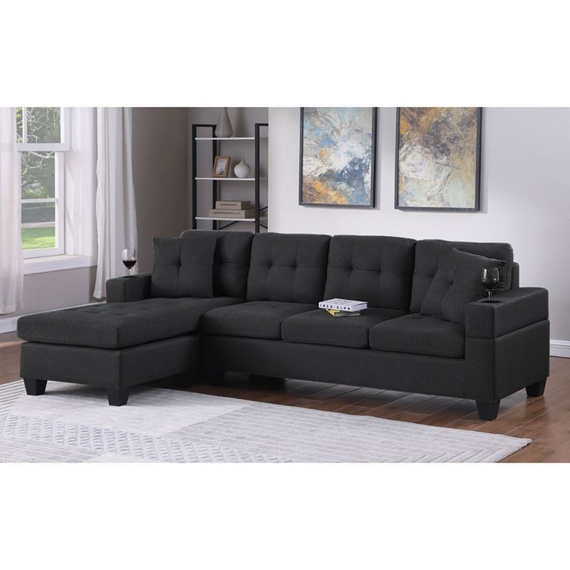 JORDAN Καναπές Σαλονιού Γωνία Αναστρέψιμος, Ύφασμα Μαύρο, Μπράτσα με ποτηροθήκες (Ε-00026442)