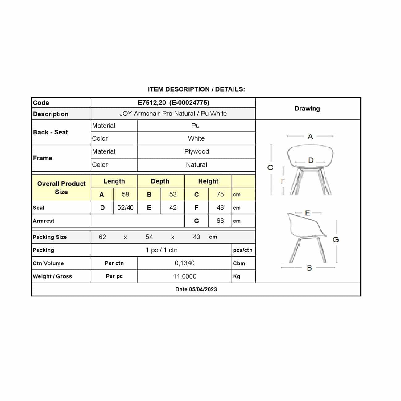 Ε7512,20 JOY Πολυθρόνα-Pro Φυσικό/Pu Άσπρο