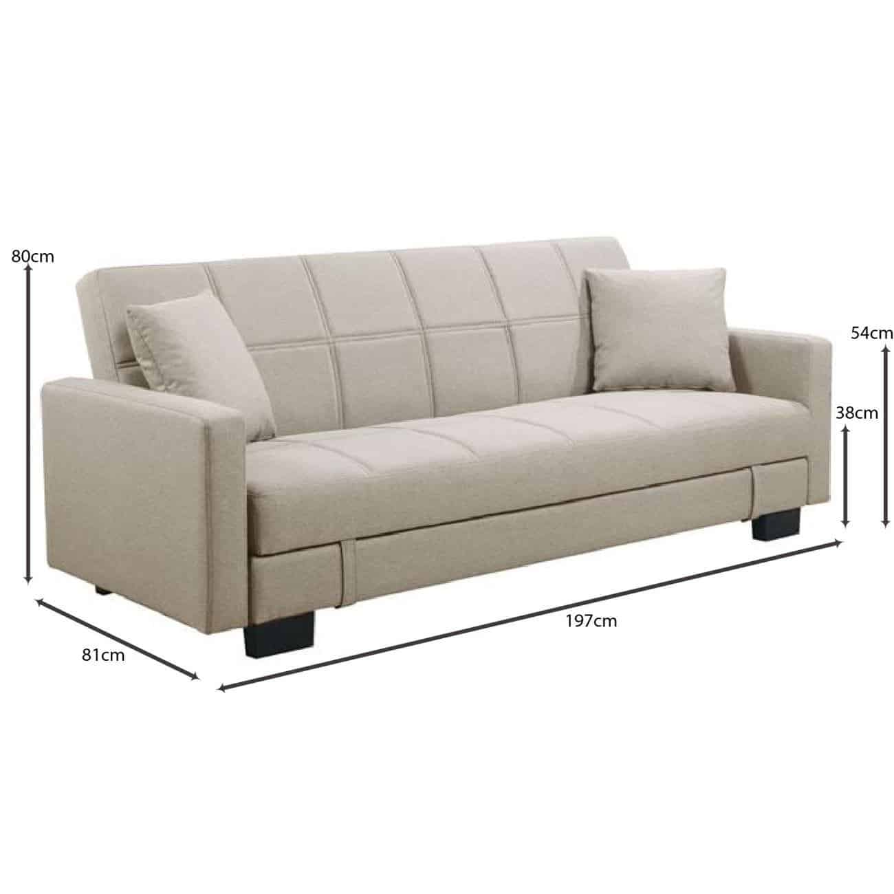 KELSO Καναπές – Κρεβάτι με Αποθηκευτικό Χώρο, 3Θέσιος, Ύφασμα Cappuccino 197x81x80cm Bed:176x105x38cm