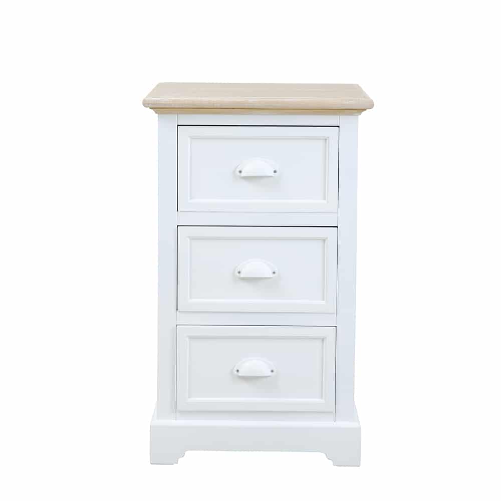 Το κομοδίνο Kimolos ενσωματώνει τη διαχρονική κομψότητα με τη φυσική ζεστασιά, καθιστώντας το ιδανική επιλογή για κάθε υπνοδωμάτιο. Κατασκευασμένο από λακαριστό MDF σε λευκή απόχρωση, προσδίδει φρεσκάδα και φωτεινότητα στον χώρο σας, ενώ η επιφάνειά του από φυσικό καπλαμά ξύλου προσφέρει μια γήινη, αυθεντική αίσθηση. Διαθέτει τρία ευρύχωρα συρτάρια που προσφέρουν πρακτικές λύσεις αποθήκευσης, συνδυάζοντας λειτουργικότητα και διαχρονικό στυλ. Ένα εκλεπτυσμένο έπιπλο που ταιριάζει σε κάθε αισθητική, από την παραδοσιακή μέχρι τη μοντέρνα.