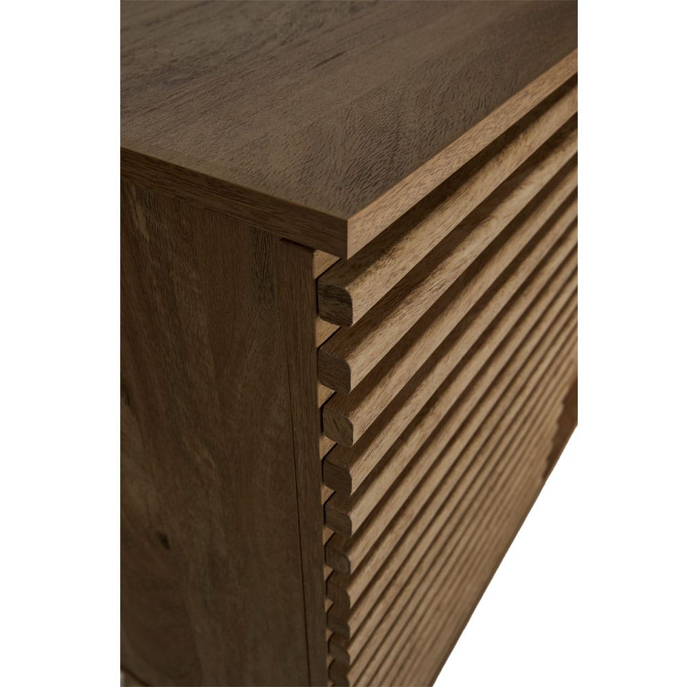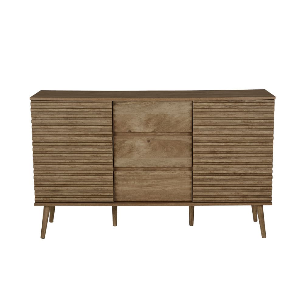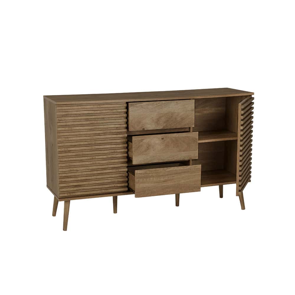 Ο μπουφές Kiros συνδυάζει τη φυσική αισθητική με την πρακτικότητα, δημιουργώντας ένα κομψό και λειτουργικό έπιπλο. Με επένδυση από paper wood σε φυσική απόχρωση, προσδίδει ζεστασιά και διαχρονική φινέτσα στον χώρο σας. Διαθέτει τρία ευρύχωρα συρτάρια και δύο ντουλάπια, προσφέροντας άφθονο αποθηκευτικό χώρο για να οργανώσετε με στυλ τα αντικείμενά σας. Το λιτό και εκλεπτυσμένο σχέδιό του καθιστά τον μπουφέ Kiros ιδανική επιλογή για σαλόνια και τραπεζαρίες που αναζητούν ένα μοντέρνο και ταυτόχρονα φιλόξενο ύφος.