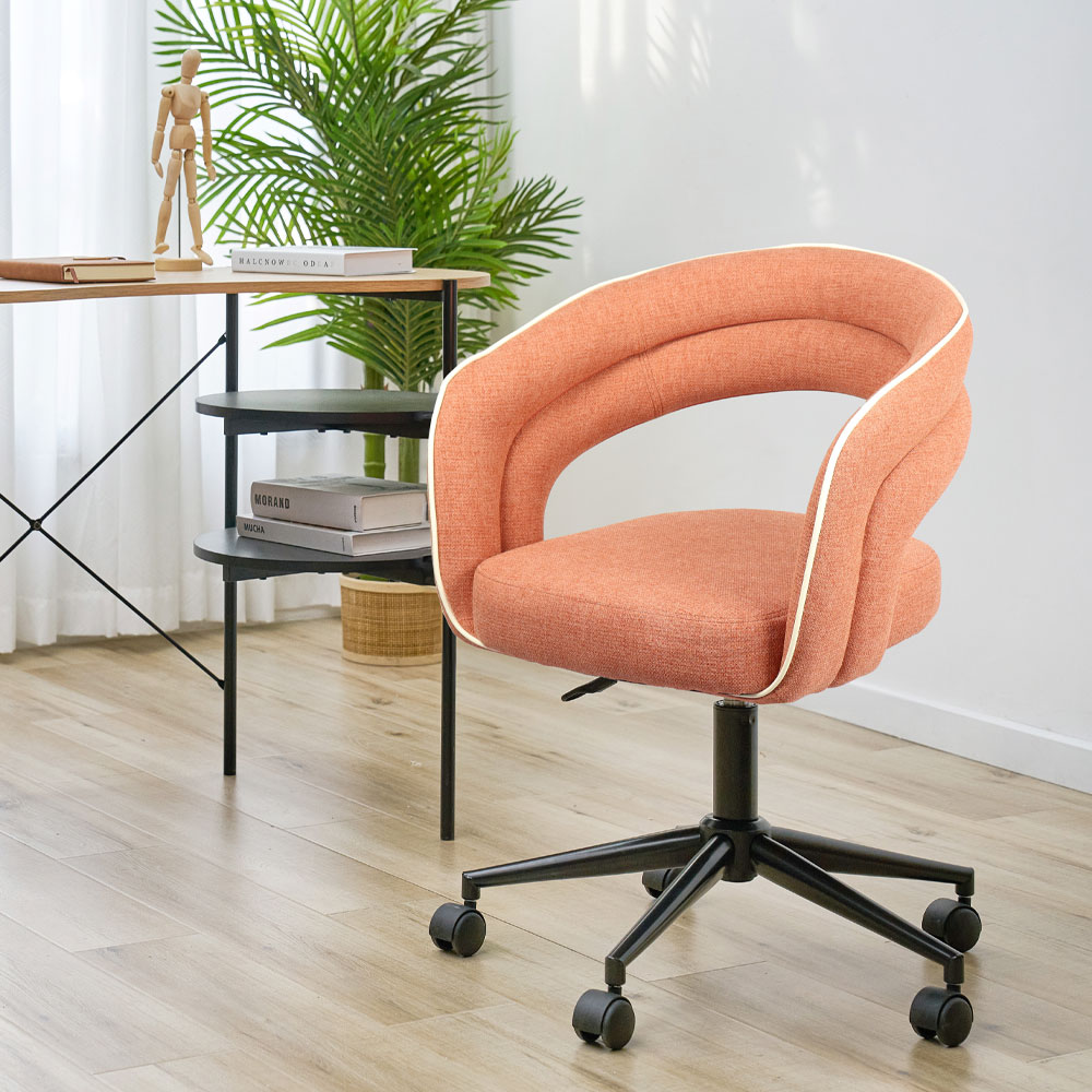 Η καρέκλα γραφείου La Luna ενσωματώνει εκλεπτυσμένη αισθητική και άνεση, καθιστώντας την ιδανική για κάθε χώρο εργασίας. Το κάθισμα και η πλάτη της είναι επενδυμένα με ύφασμα σε ζεστή terracotta απόχρωση, ενώ η λευκή λεπτομέρεια στη ραφή προσδίδει μια κομψή και διακριτική πινελιά που αναδεικνύει τον μοναδικό της σχεδιασμό.Η μεταλλική βάση σε μαύρη απόχρωση προσφέρει σταθερότητα και αντοχή, συνδυάζοντας λειτουργικότητα και μοντέρνο στυλ.Η La Luna αποτελεί μια εξαιρετική επιλογή για όσους αναζητούν εργονομία, ποιότητα και διαχρονικό στυλ στο γραφείο τους.