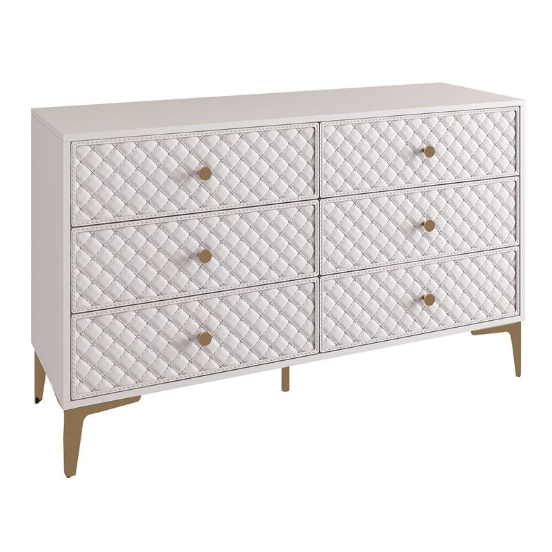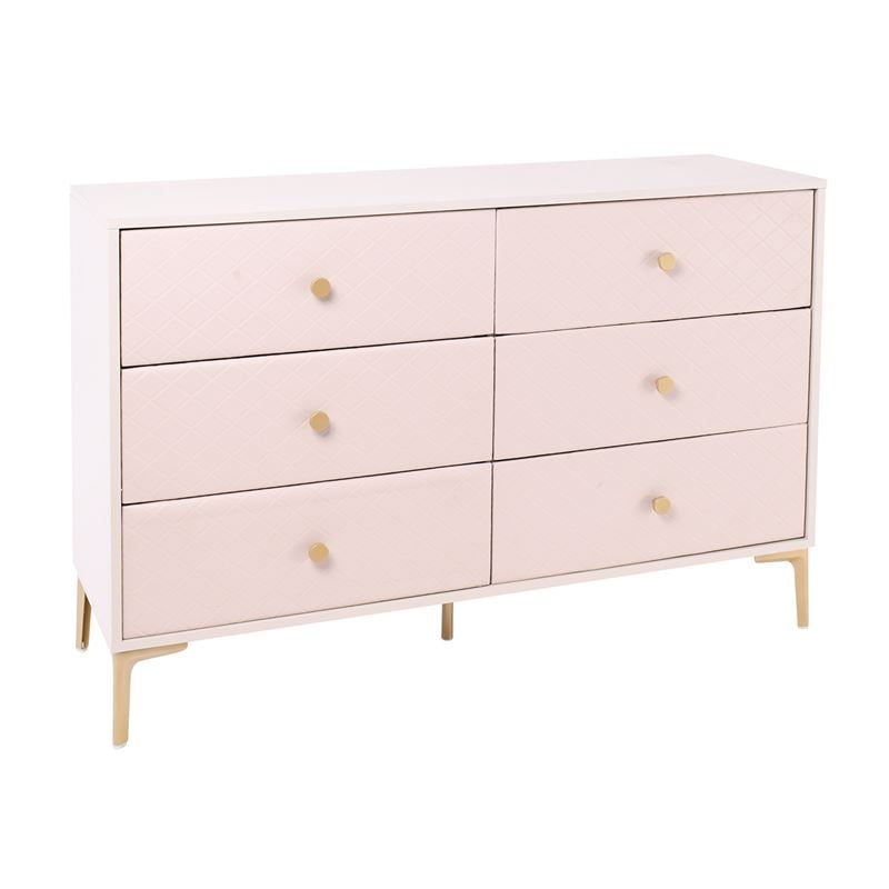 LANA Συρταριέρα με 6 Συρτάρια, Απόχρωση Εκρού, με πρόσοψη Pu Καπιτονέ 120x40x80cm