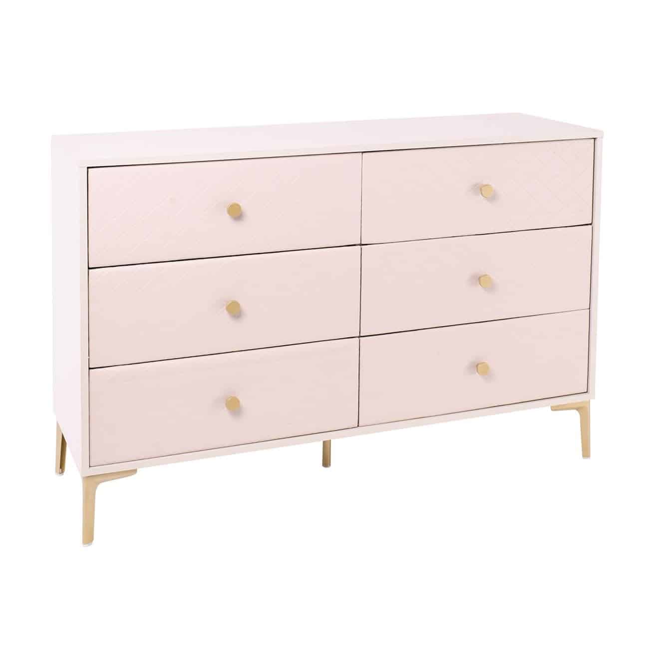 LANA Συρταριέρα με 6 Συρτάρια, Απόχρωση Εκρού, με πρόσοψη Pu Καπιτονέ (Ε-00026067)