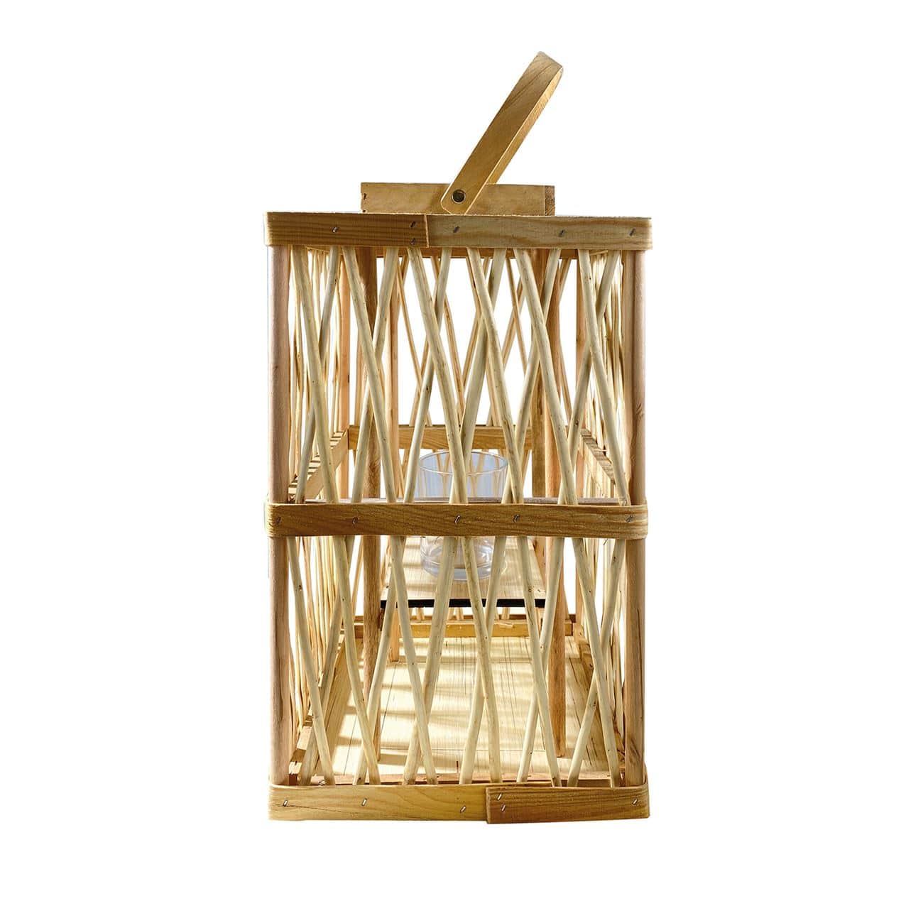 Ε2901 LANTERN SQUARE Φανάρι Ξύλινο, Φυσικό (με Γυάλινο ποτήρι)