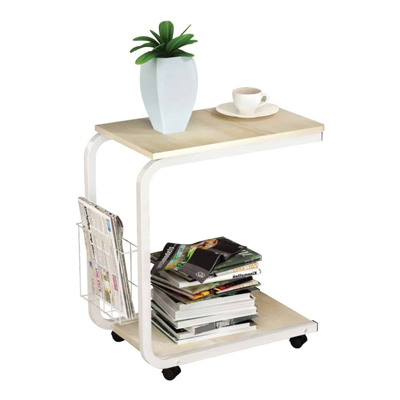 LAP Βοηθητικό Τραπεζάκι, Μέταλλο Βαφή Άσπρο, Απόχρωση Maple 56x30x59cm