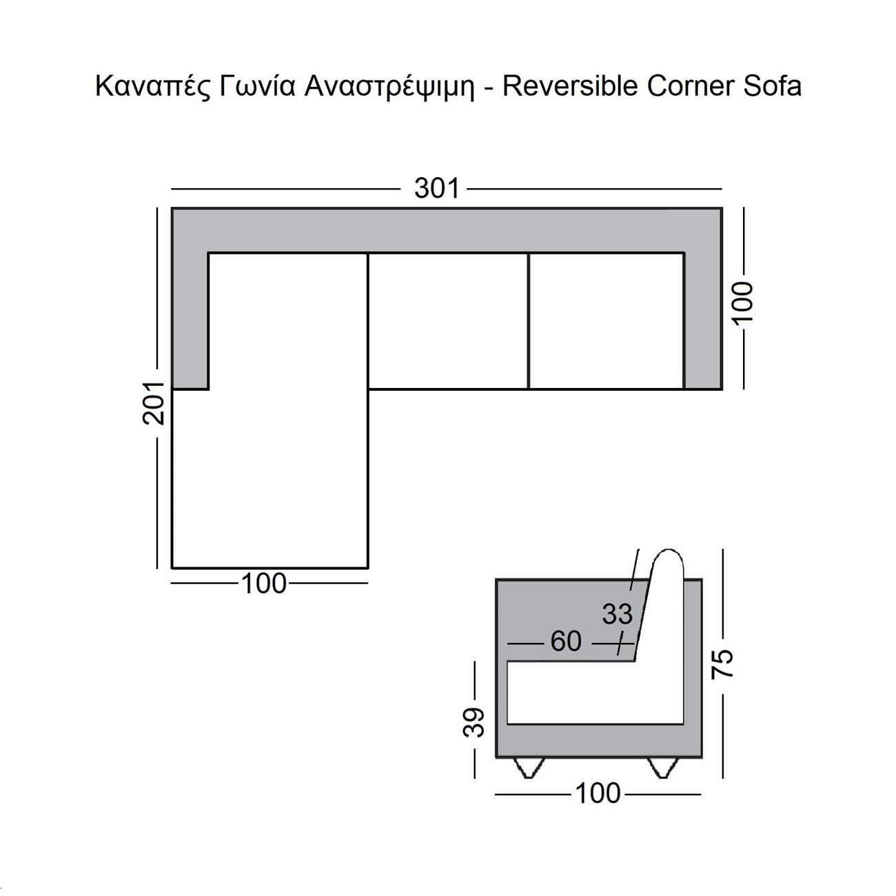 Διαστάσεις: 301x201x100cm H.75/39cm
