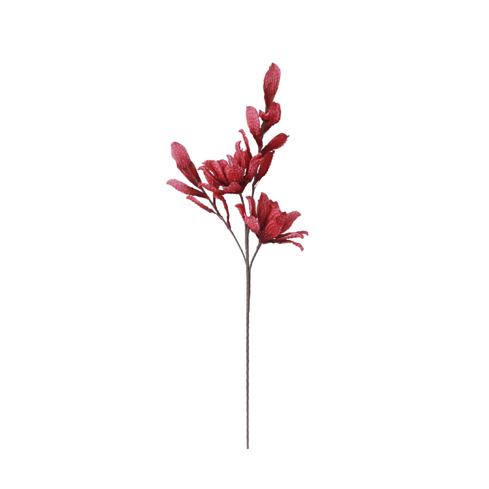 Το τεχνητό λουλούδι LIAB σε μπορντώ απόχρωση αποπνέει βάθος και πολυτέλεια. Η απαλότητα της EVA Foam αναδεικνύει τα πέταλα με ρεαλισμό, καθιστώντας το ιδανικό για elegant, dramatic συνθέσεις. Προσφέρει έντονο χαρακτήρα χωρίς υπερβολή.