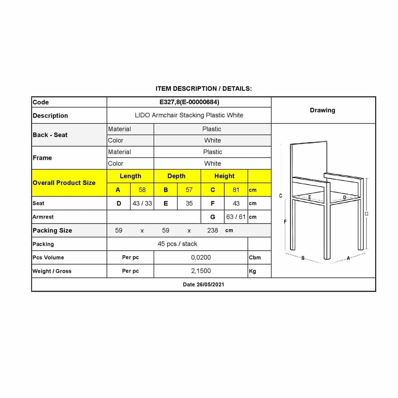 Ε327,8 – LIDO Πολυθρόνα PP Άσπρo, Στοιβαζόμενη