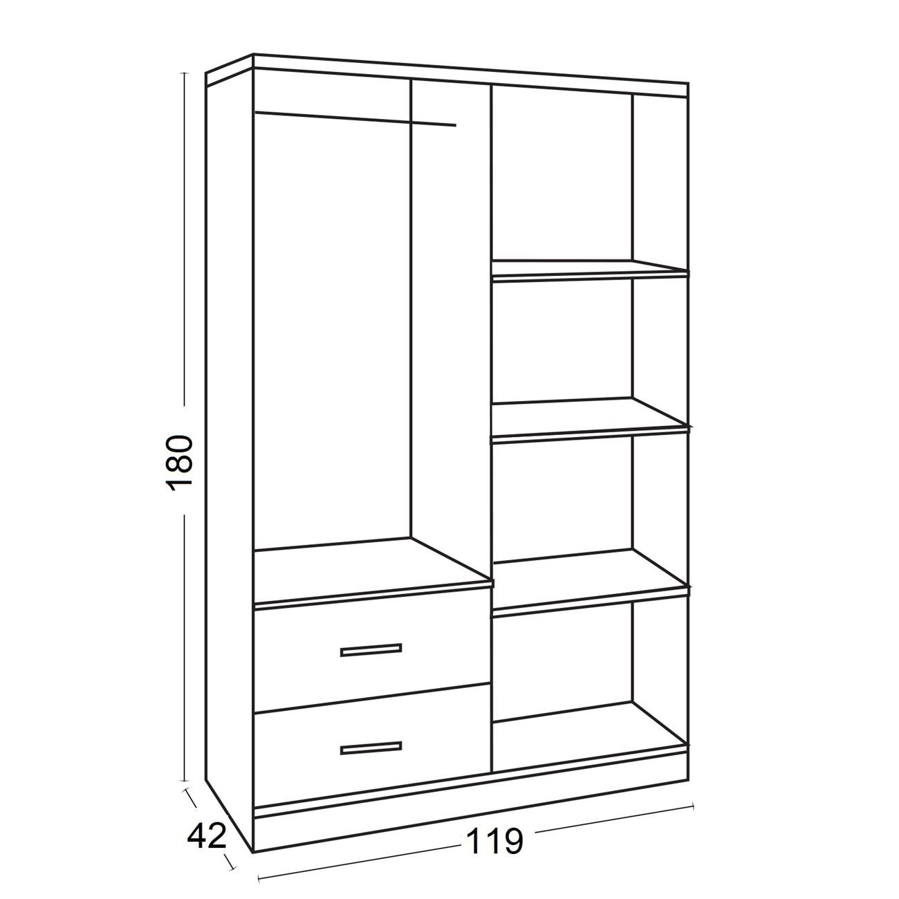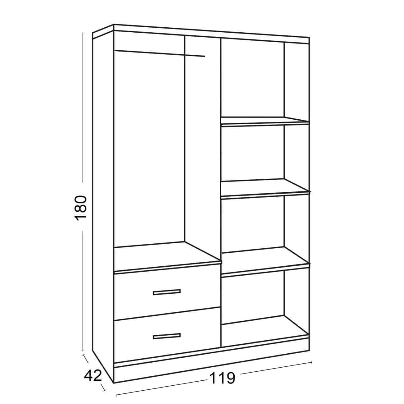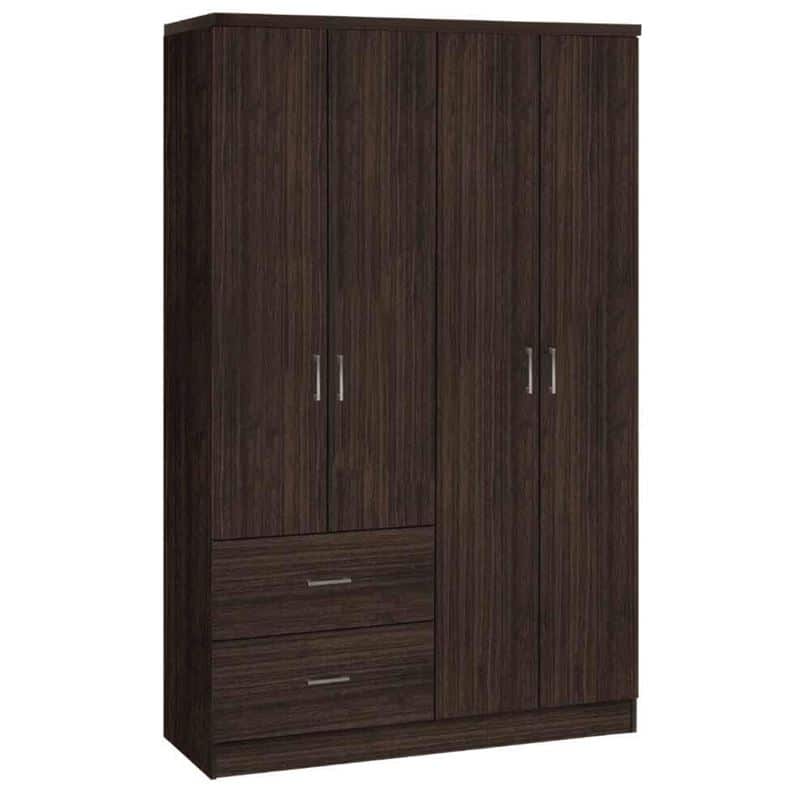 LIFE Ντουλάπα Τετράφυλλη, 2 Συρτάρια, 5 Ράφια, Θέσεις για Κρεμάστρες, Απόχρωση Wenge 119x42x180cm