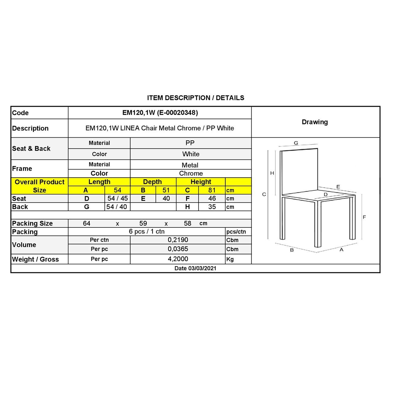 ΕΜ120,1W LINEA Καρέκλα PP Άσπρο (Συσκ.6)