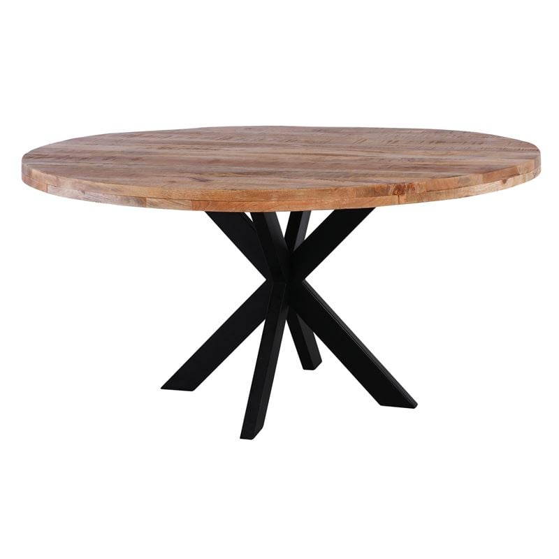 LIZARD Τραπέζι Ροτόντα Τραπεζαρίας, Ξύλο Mango Απόχρωση Φυσικό, Μέταλλο Μαύρο Φ150cm H.78cm