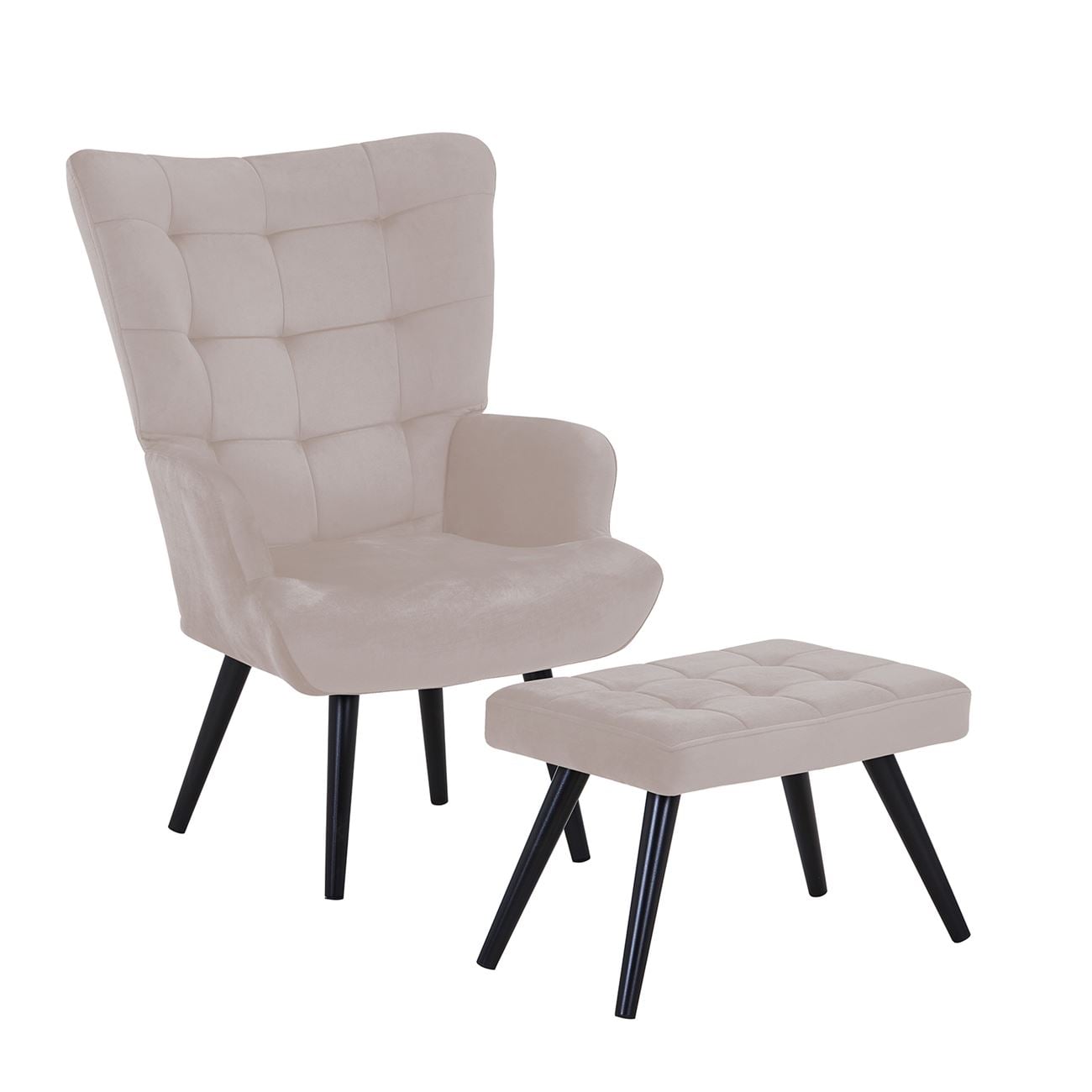 LOBBY Πολυθρόνα – Μπερζέρα με Σκαμπό – Υποπόδιο, Μέταλλο Μαύρο, Ύφασμα Velure Μπεζ 72x80x98cm / 60x40x39cm