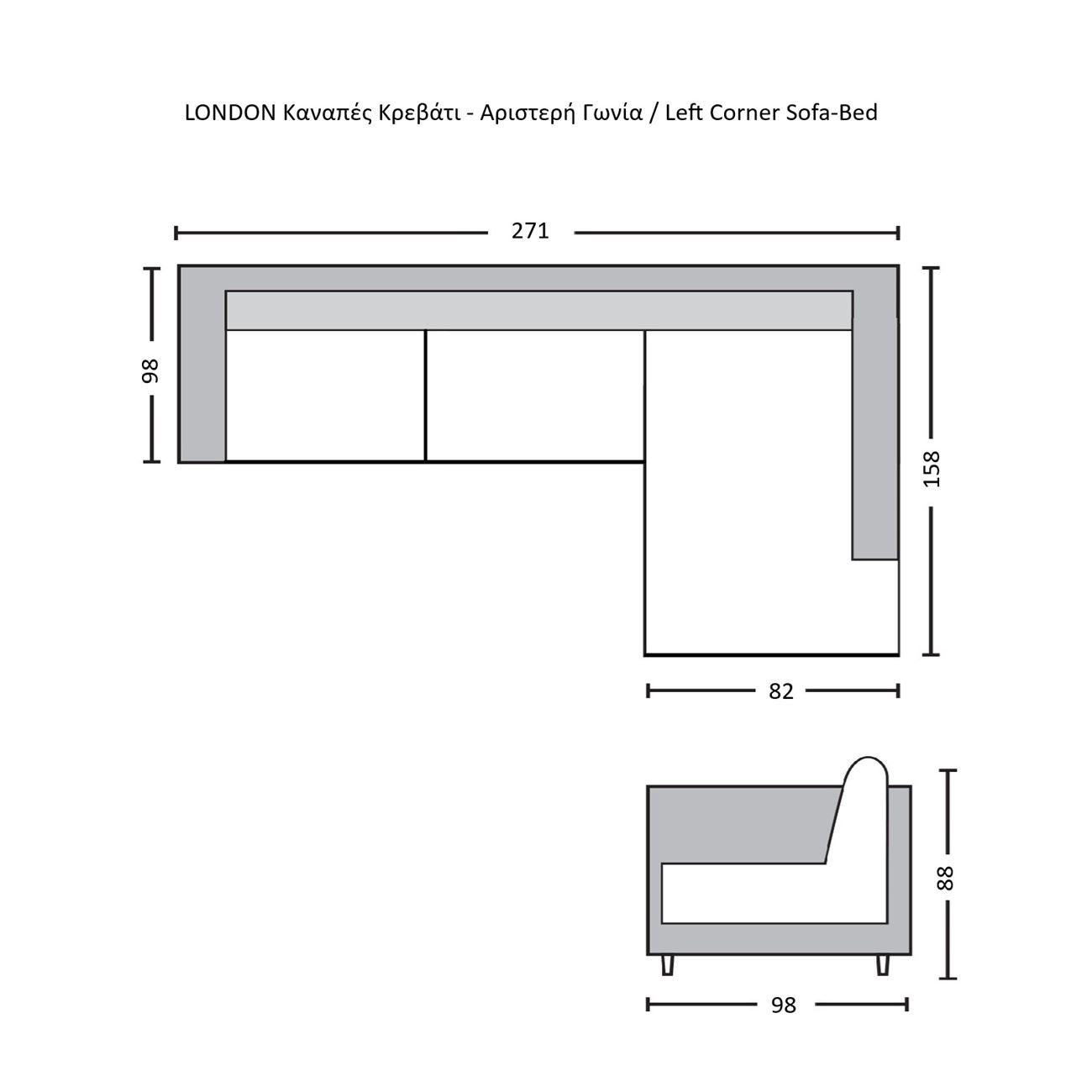 LONDON Καναπές Γωνία με Κρεβάτι Σαλονιού – Καθιστικού
