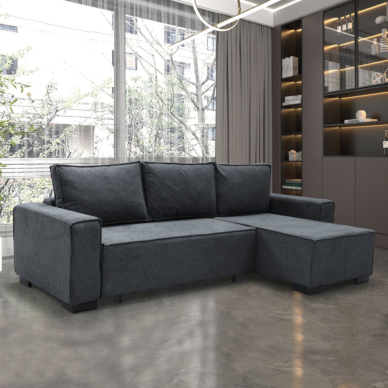 LONDON Καναπές – Κρεβάτι Αριστερή Γωνία, Ύφασμα Ανθρακί Sofa:271x158x90 Bed:137x227cm