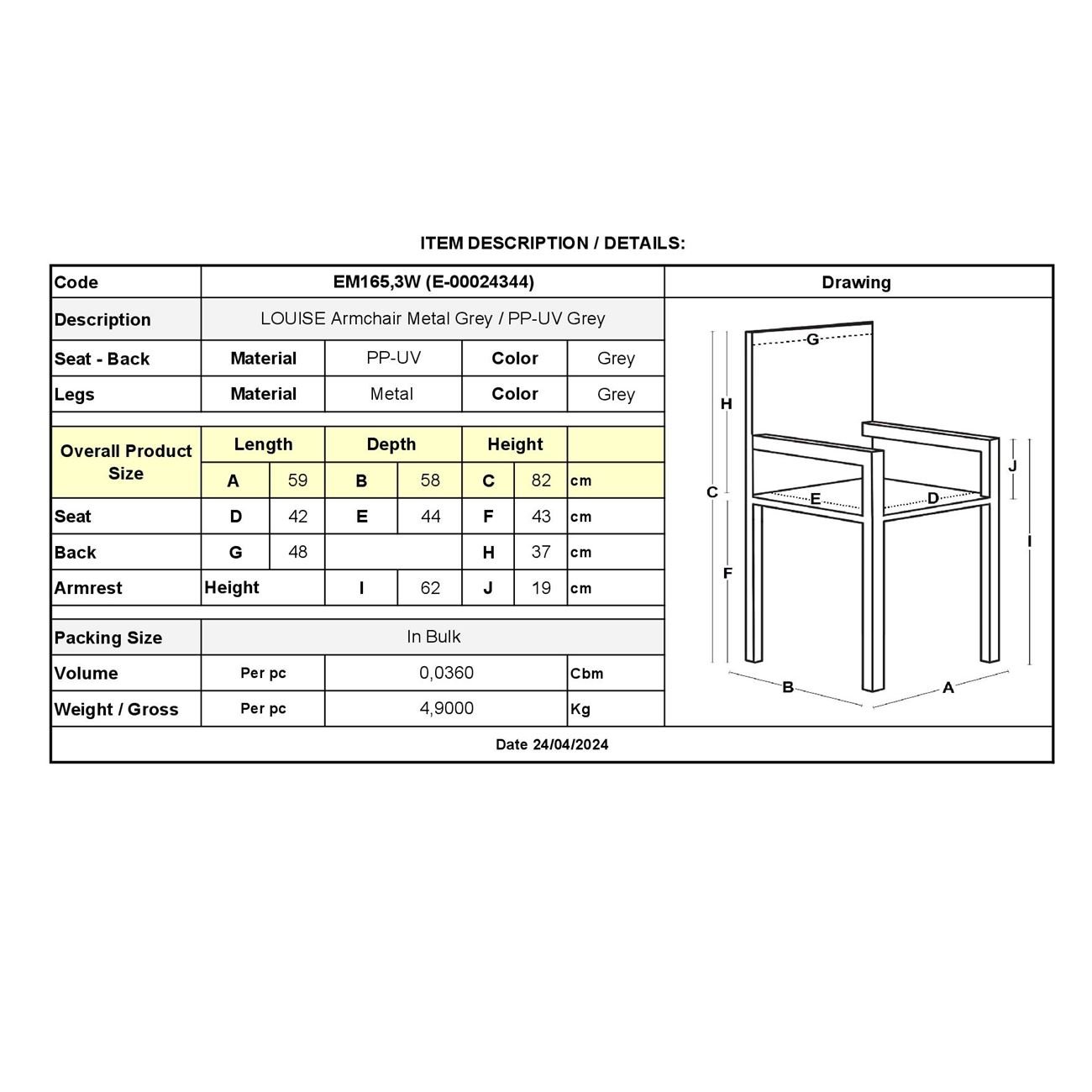 LOUISE Πολυθρόνα Μέταλλο Βαφή Γκρι, PP-UV Γκρι (εκτός συσκευασίας) 59x58x82cm